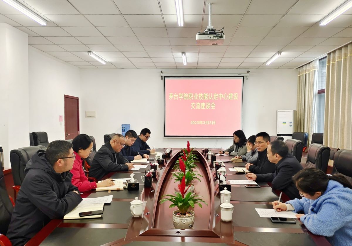 3月3日,贵州省职业技能鉴定考评指导中心主任万远茂、遵义市人社局党组成员、市就业局局长贺孝循、仁怀市人社局副局长肖隽一行到万象城娱乐awc线路调研职业技能等级认定工作,部署了“贵州酱酒职业技能培训基地”建设任务,学校党委副书记、常务副校长李增驰出席交流座谈会。