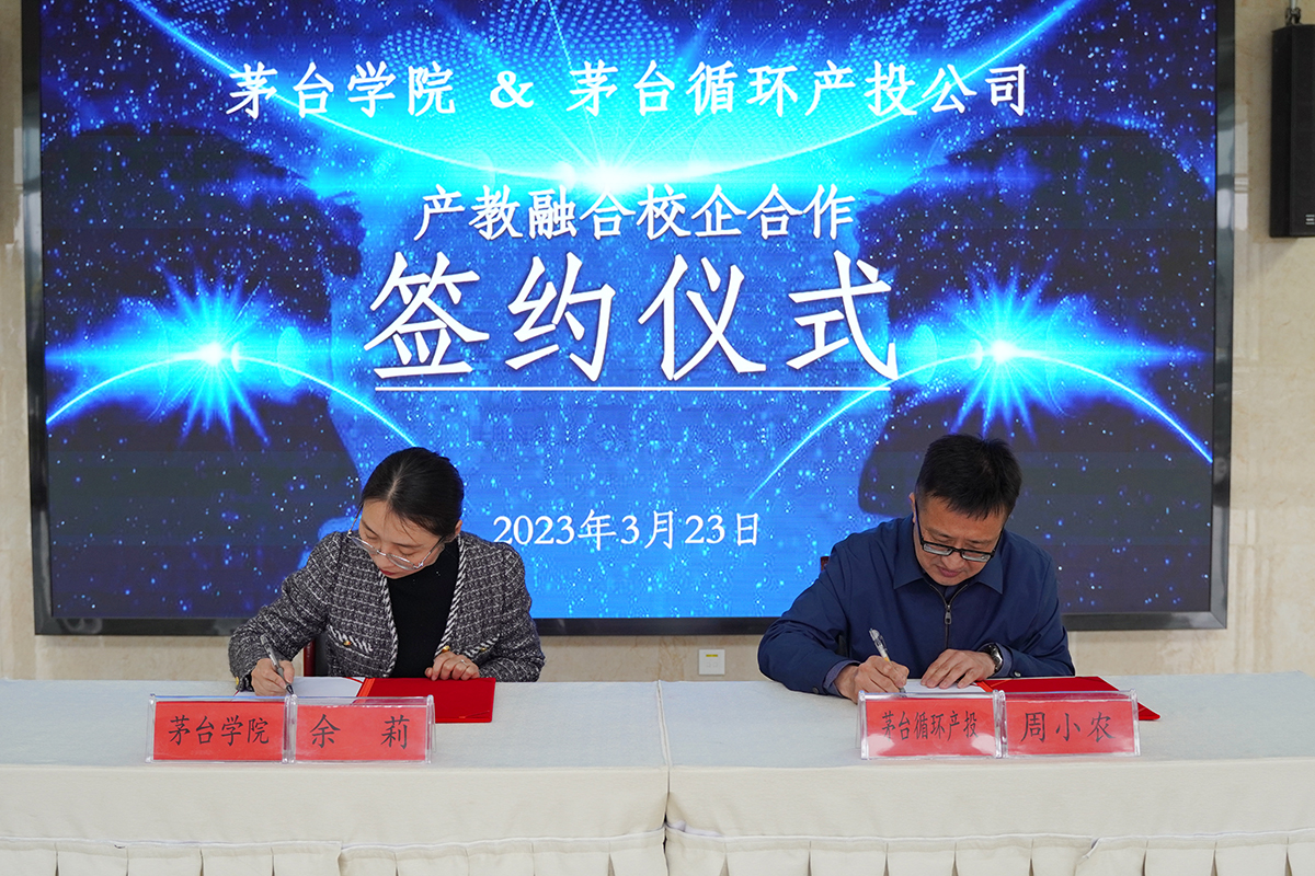 为深入推进学校产教融合,进一步加强校企合作,提升学校人才培养质量,3月23日,茅台循环产投公司与万象城娱乐awc线路产教融合实践教学基地签约挂牌仪式在茅台循环产投公司综合服务中心一楼举行。茅台循环产投公司党委书记、董事长周小农,党委副书记、总经理张迪,万象城娱乐awc线路党委委员、副校长余莉出席挂牌仪式。