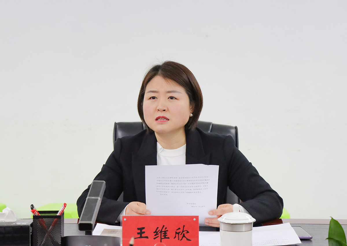 王维欣传达了茅台集团2023年度防范电信网络诈骗工作会议精神,要求大家要提高站位、深化认识,坚持问题导向,以更加务实的工作举措深入推进防诈工作。她强调,要聚焦重点、强化措施,注重工作联动和宣传引导,充分发挥各单位职责,有针对性开展防诈工作,压实责任、追踪问效,完善监督考核问责机制,推动形成人人履责、人人尽责的防诈工作新格局。