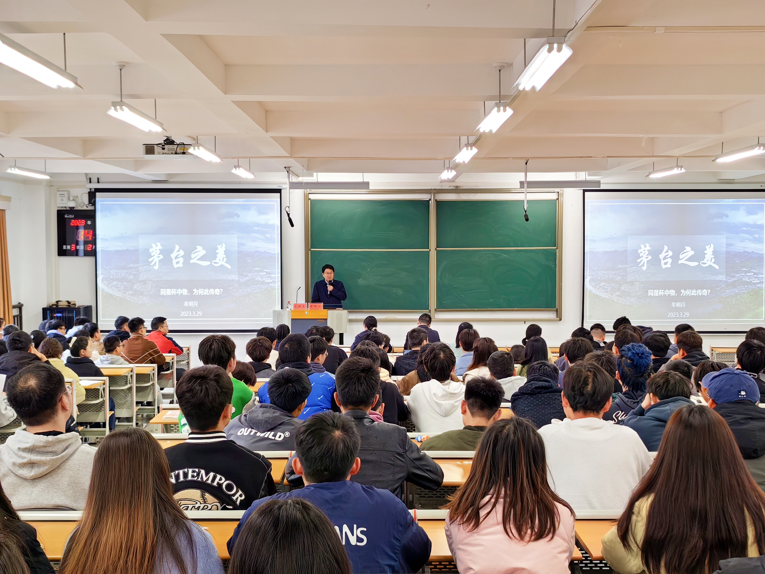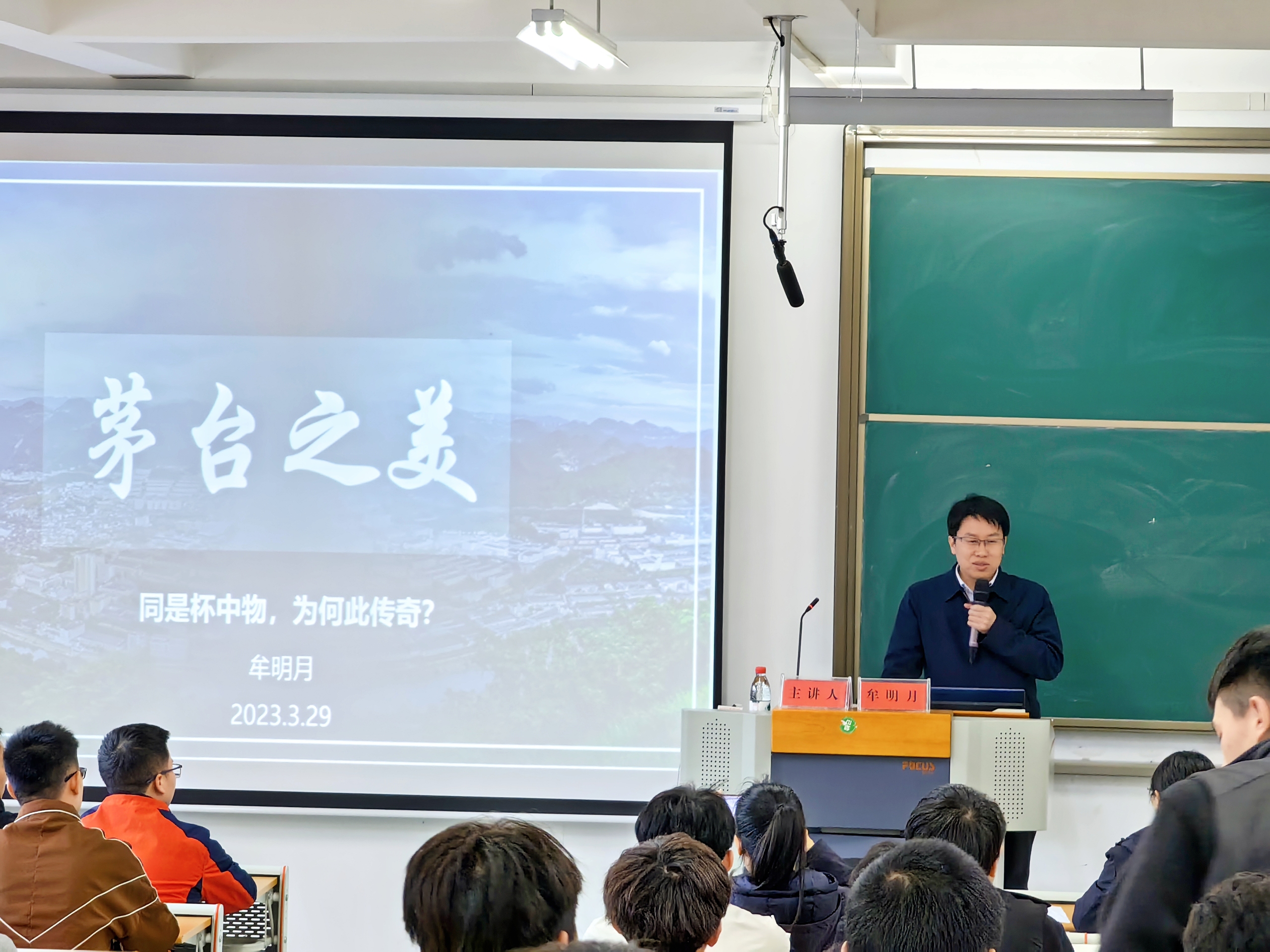 3月29日,万象城娱乐awc线路酿酒工程系举办的“酿酒大师讲堂”系列讲座首期开讲,贵州茅台酒股份有限公司生产管理部部长牟明月受邀主讲。