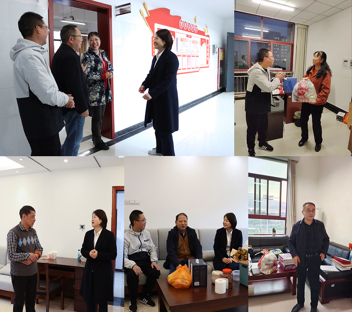 王维欣代表学校工会与老专家、老教授们亲热交流、倾听心声,感谢他们在学校教育事业发展中的无私奉献,诚恳听取他们对学校相关工作的意见建议,仔细询问他们身体健康状况和日常生活情况,希望他们继续关心和支持学校工作,发挥余热为学校教育事业发展再作贡献,并为他们送上慰问品。
