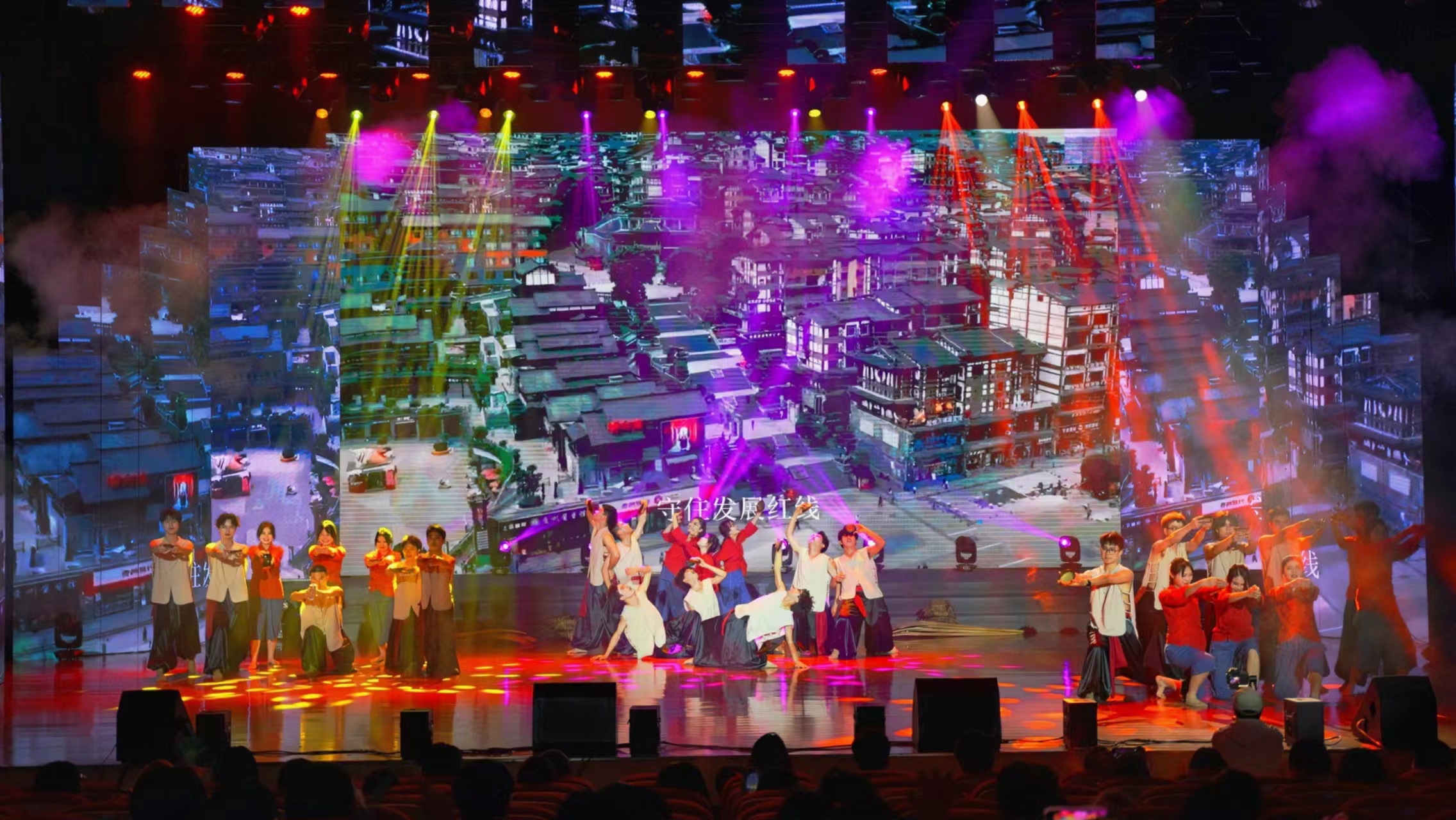 文艺汇演中,情景歌舞《蓝线:勇毅前行》,歌舞《绿线:绿水青山》,主题朗诵《白线:必由之路》,情景歌舞《紫线:精益求精》,主题小品《红线:牢记使命》,大合唱《中国》等节目精彩纷呈,抒发了青年学子爱党爱国的情怀,表达了感党恩、听党话、跟党走的信心和决心,同时也紧紧贴合茅台集团“五线”发展理念,设计精巧、形式丰富,充分展现了茅院青年学子的精神风貌,不断激荡起澎湃的青春力量。