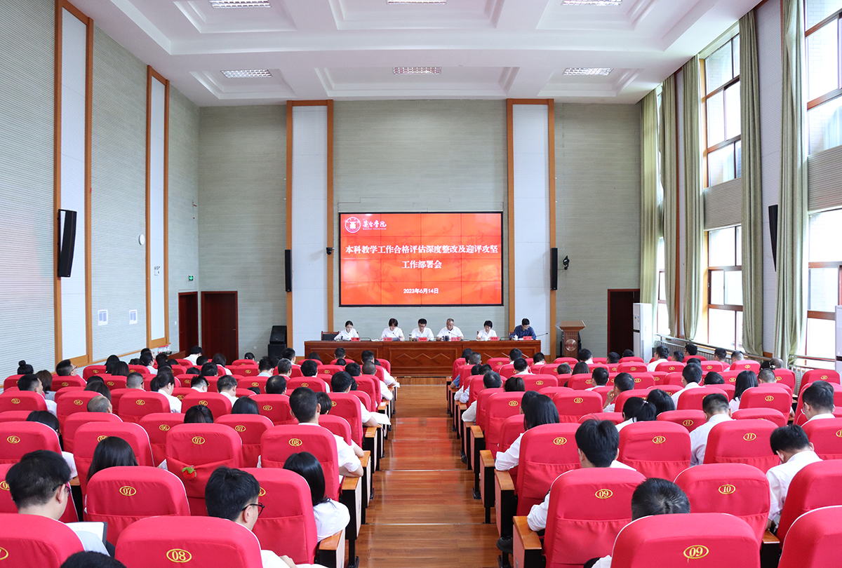 为进一步统一思想、凝聚共识,全力打好决胜合格评估攻坚战,6月14日,学校在行政楼报告厅召开本科教学工作合格评估深度整改及迎评攻坚工作部署会,对评建工作进行再部署、再动员,激励大家提振精神、鼓足干劲,在攻坚克难中稳步有序推进评建各项工作。