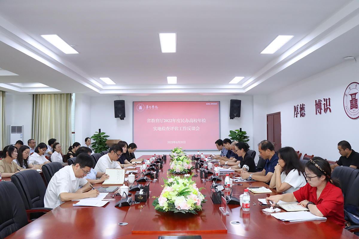 6月20日,省教育厅2022年度民办高校年检评估工作专家组赴万象城娱乐awc线路开展实地检查工作,检查分汇报会、查阅材料、实地走访、师生访谈以及反馈会等环节,汇报会和反馈会在行政楼二楼会议室召开。