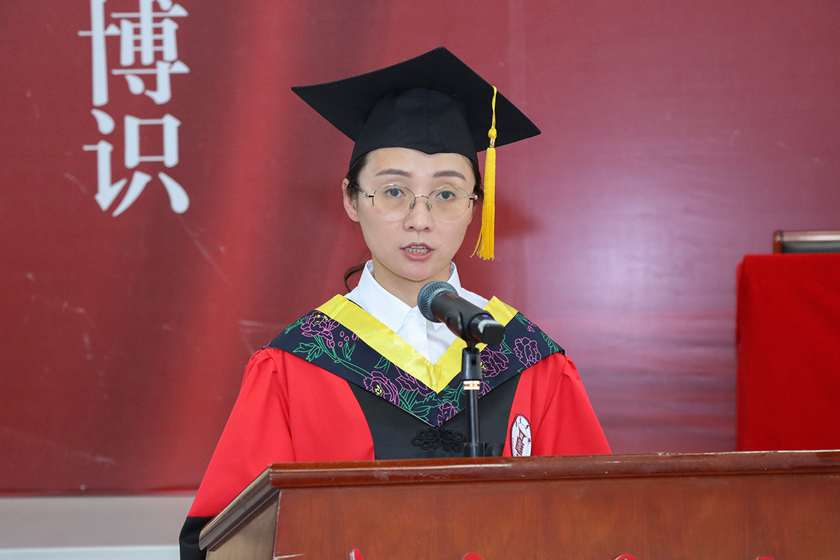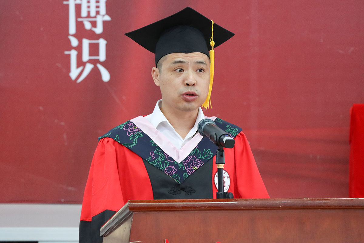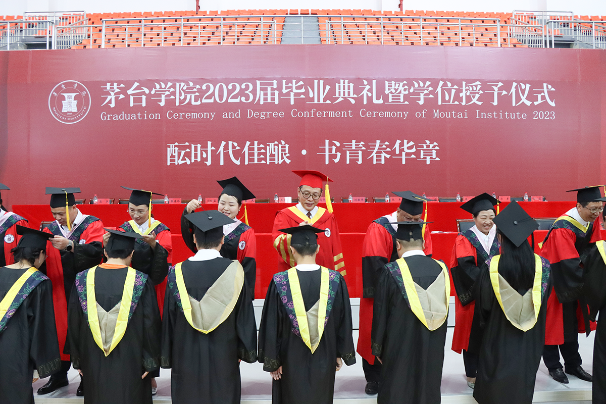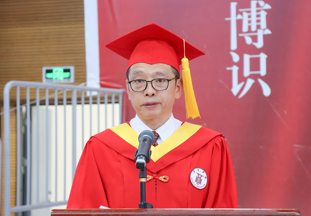 校长蔡绍洪为毕业学子拨穗正冠、颁发毕业证,鼓励大家不负韶华、砥砺前行,保持信心和热情,奔赴下一场山海。