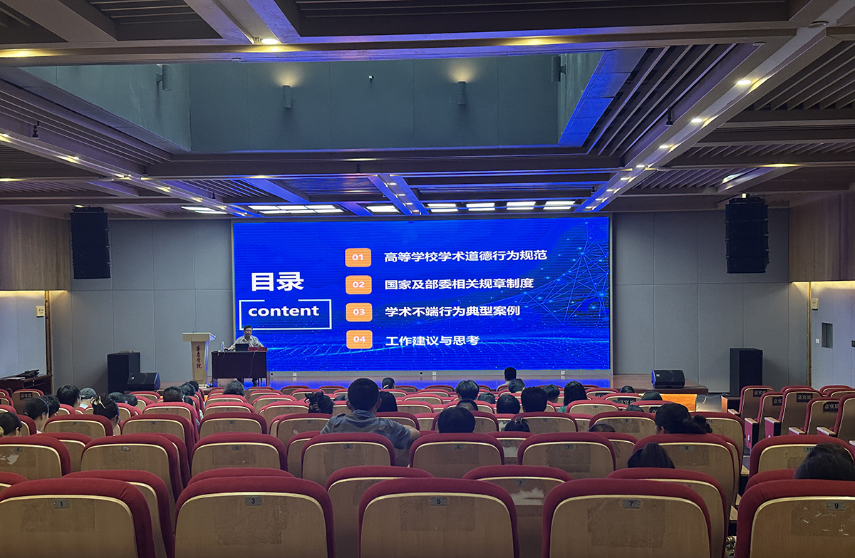 袁宏宽教授从高等学校学术道德行为规范、国家及部委相关制度、学术不端行为典型案例、工作建议与思考等几个方面,结合高校实际工作情况进行了报告。