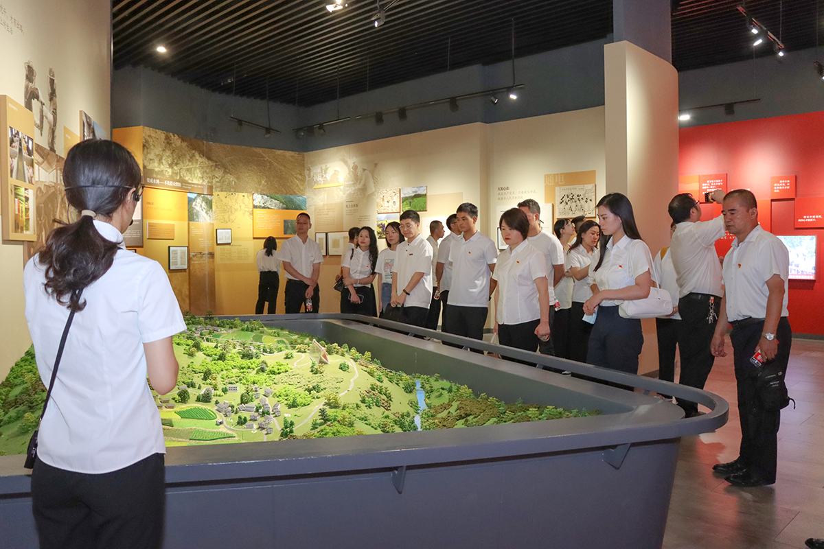 同志们来到大发渠陈列馆,在工作人员的讲解下,参观学习了大发渠的修建历史。“山高石头多,出门就爬坡。一年四季苞谷沙,过年才有米汤喝。”一首当地民谣唱出了当年村民的生活艰苦。展柜里大小不一的铁锤、錾子、尖凿,墙上挂着的凿渠、运石、测距的照片……使同志们深刻感受到当年开渠引水的艰辛不易和滴滴汗水。再观今日,水渠通了、村民笑了、生活好了,所有人无不感叹水渠修建前后乡村面貌的巨大变化。
