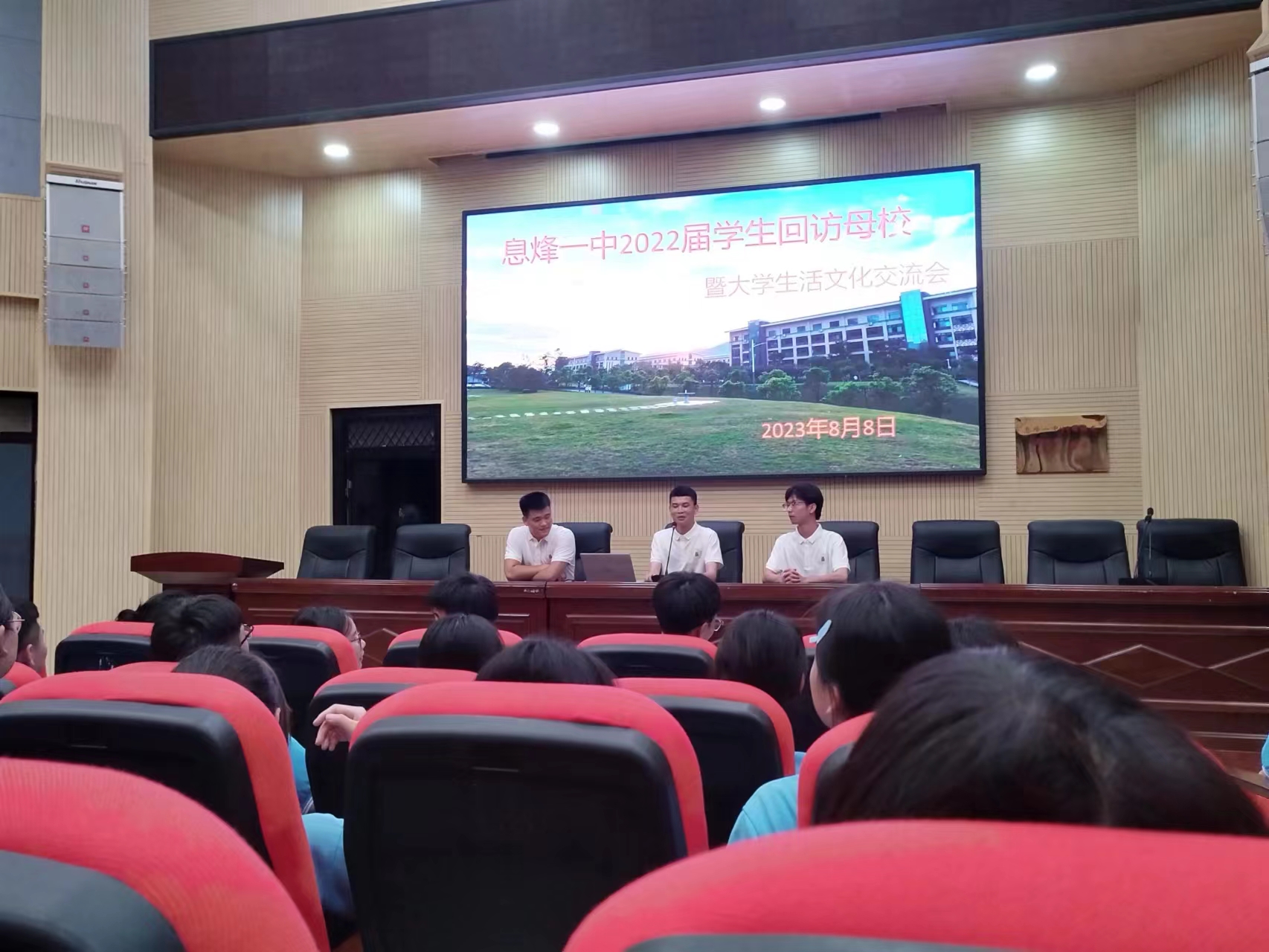8月8日,万象城娱乐awc线路旅游管理系回访母校社会实践活动团队走进息烽县第一中学,开展母校回访活动。
