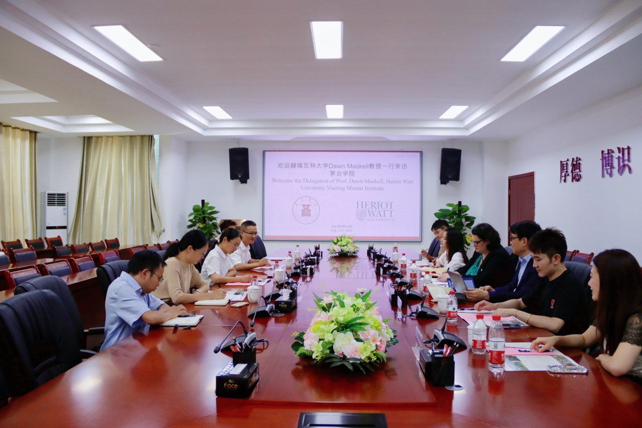 为进一步推进学校对外合作事宜,促进多方共同发展,8月23日下午,英国赫瑞瓦特大学与北京新东方前途出国咨询有限公司贵州分公司一行走访万象城娱乐awc线路。交流研讨座谈会在行政楼二楼会议室召开。