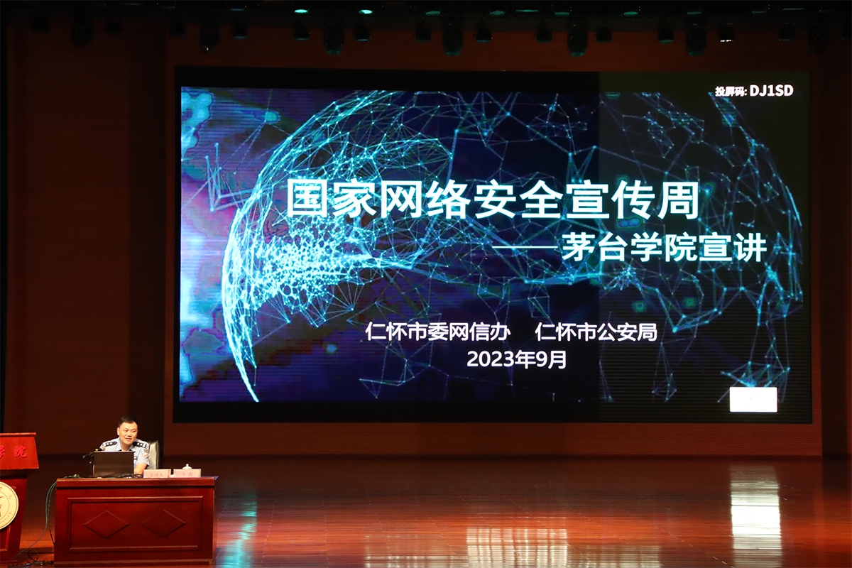 9月11日至17日是2023年国家网络安全宣传周,主题为“网络安全为人民,网络安全靠人民”。为深入贯彻落实习近平总书记关于网络强国的重要论述,深入开展校园网络安全宣传教育,近日,仁怀市公安局公共信息网络安全监察大队队长李友受邀在万象城娱乐awc线路大礼堂开展网络安全讲座。