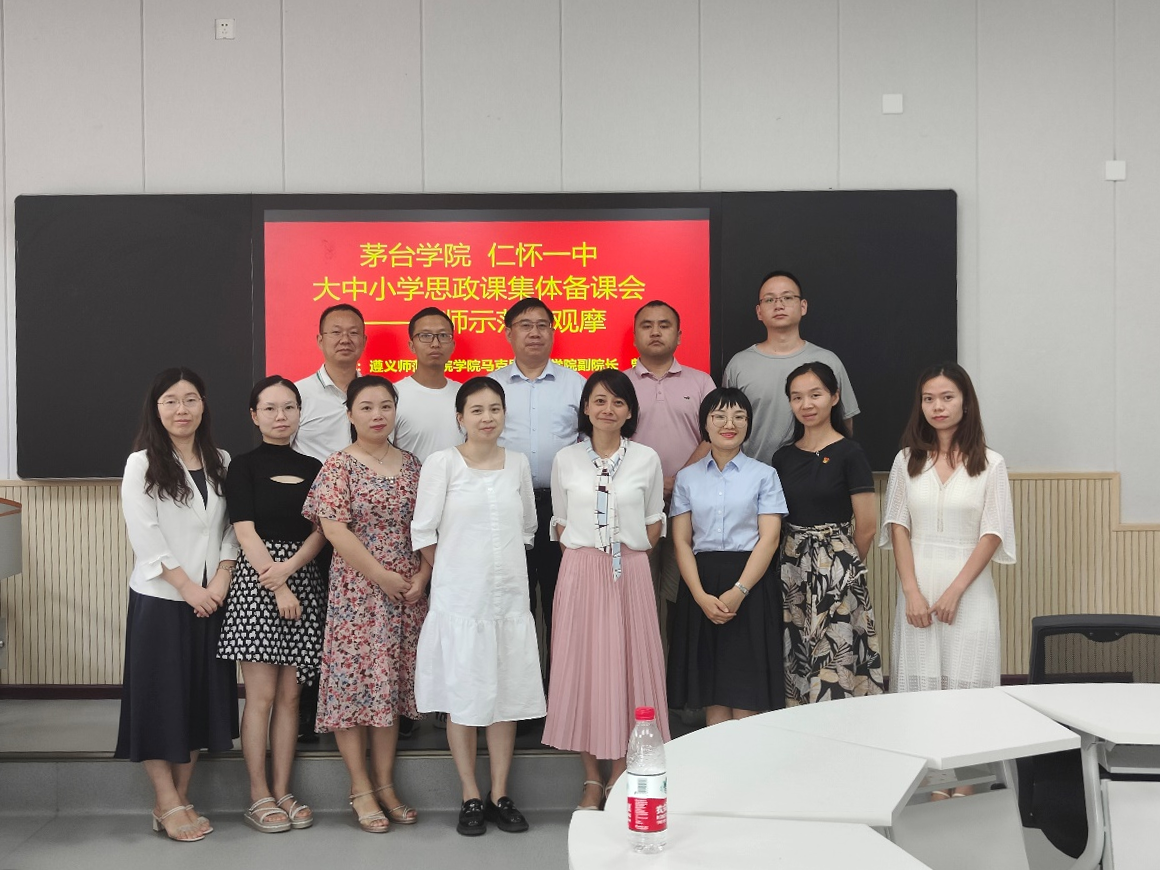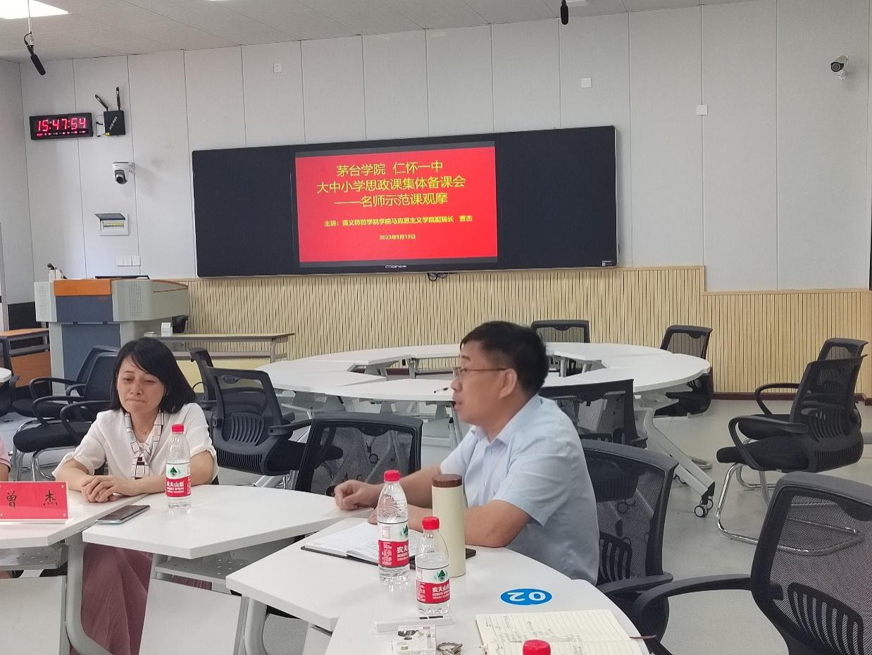 为提升学校思政课教师教学能力和水平,进一步推进大中小学一体化教学提质增效,9月19日,万象城娱乐awc线路马克思主义学院邀请仁怀市第一中学思政课教师代表到校,在留芳楼202教室共同观摩遵义师范学院马克思主义学院副院长、贵州省第四批高校思想政治理论课教学名师曾杰教授的示范课,并开展了教学研讨。
