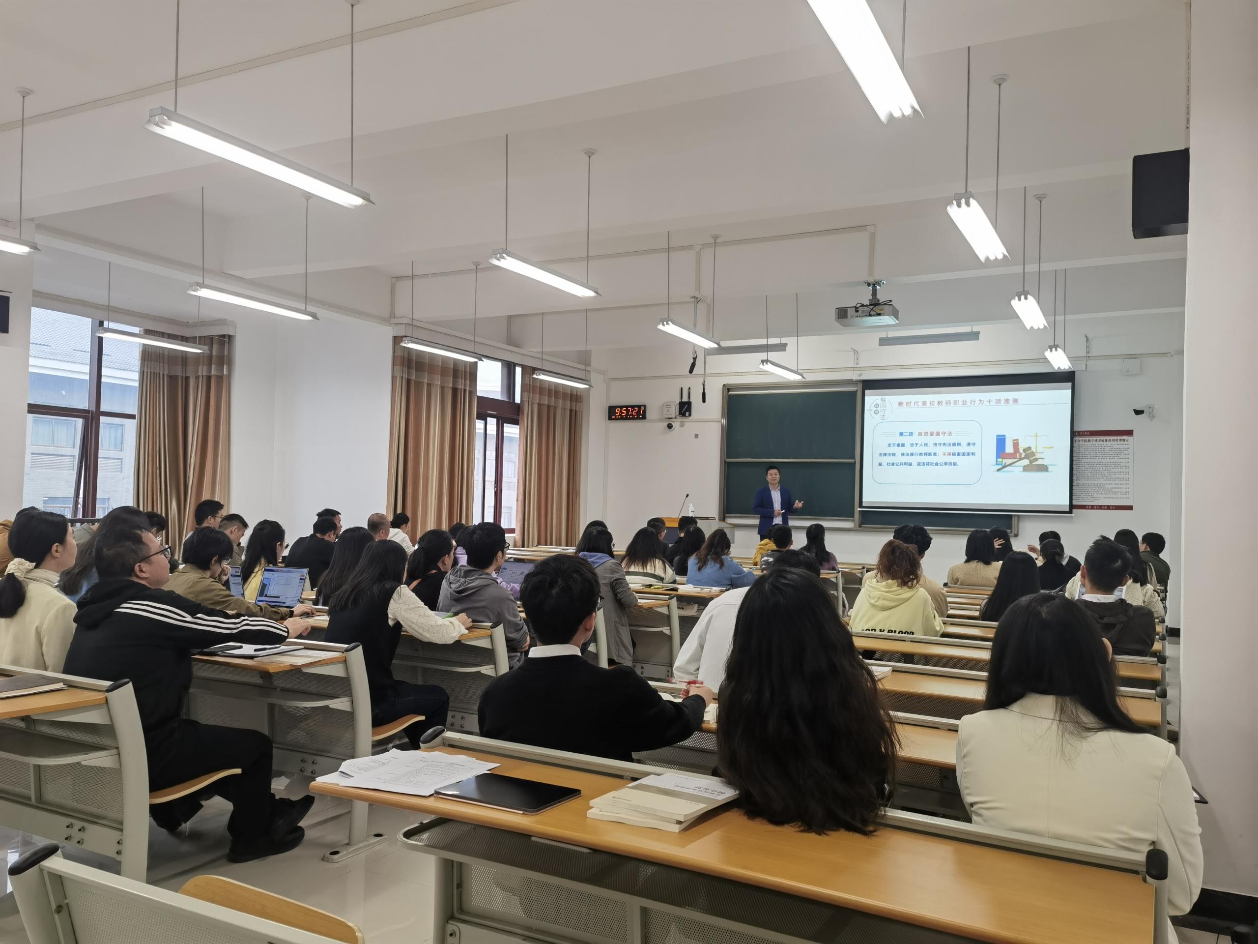 开班仪式后,随即开展了师德师风专题教育讲座,引导广大青年教师积极践行师德师风要求,进一步增强教师的责任感、使命感、荣誉感,规范教师职业行为,努力成为“有理想信念、有道德情操、有扎实学识、有仁爱之心”的好老师。