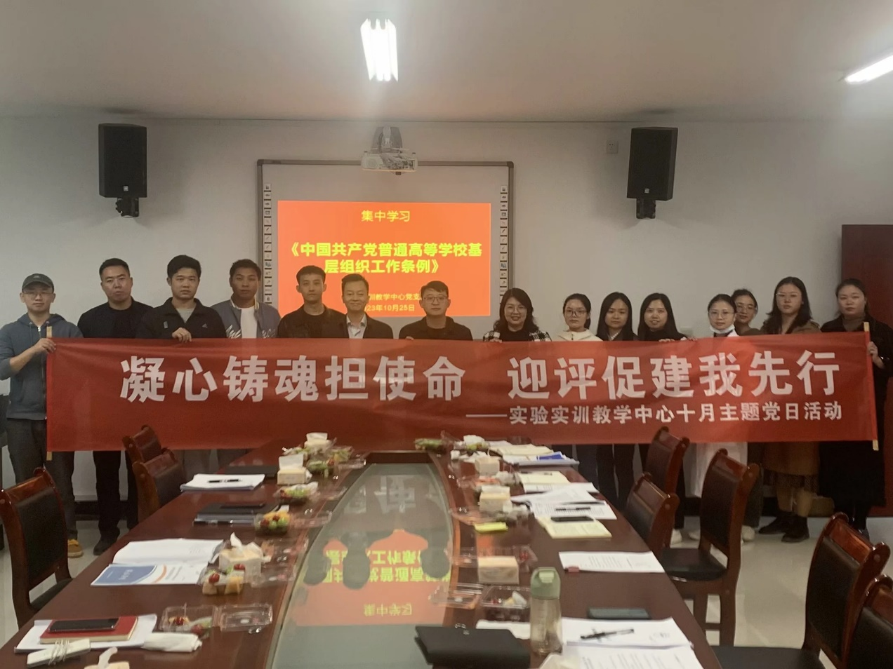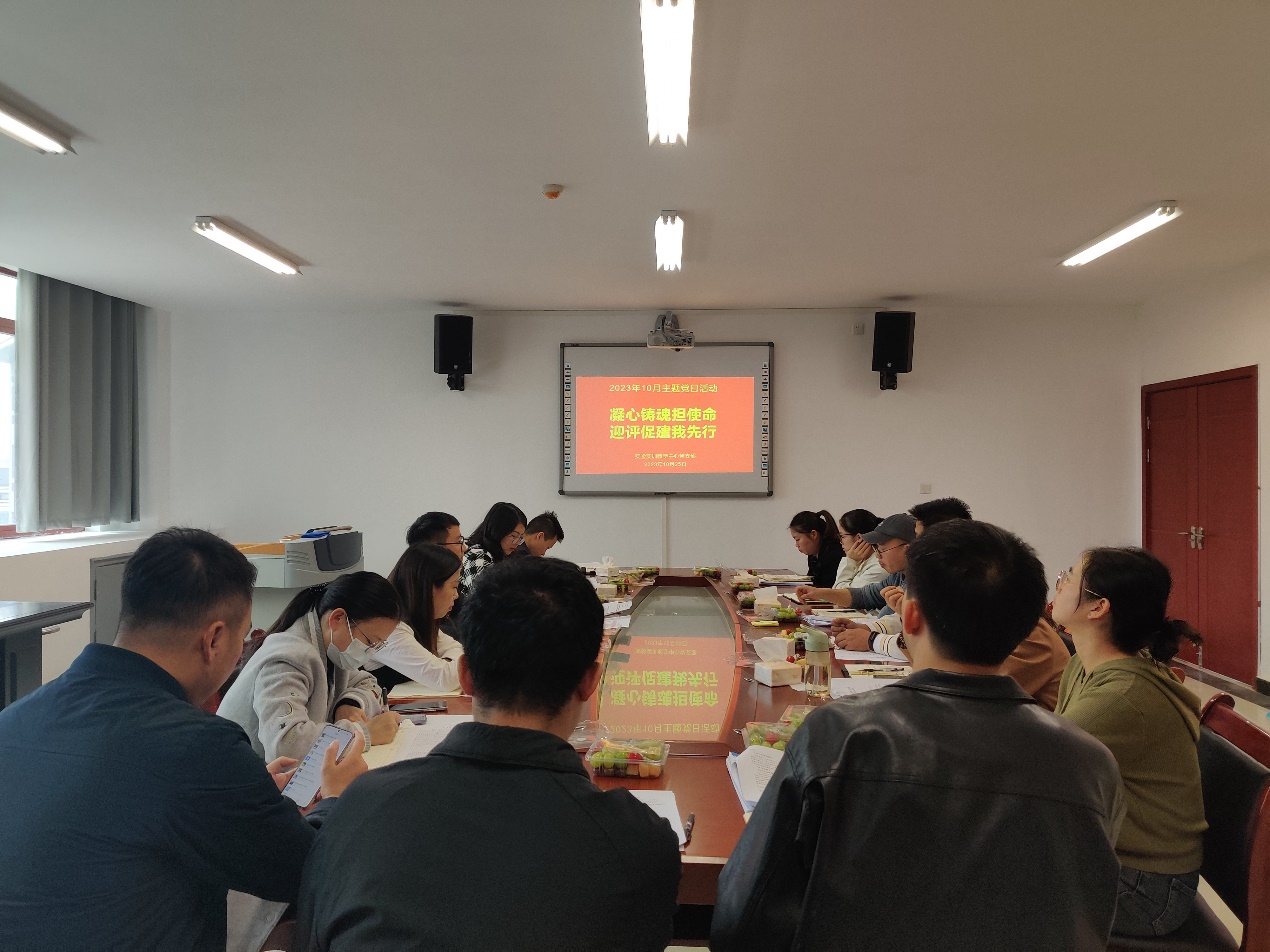 11月,学校将接受教育部本科教学工作合格评估,此次评估是对万象城教育教学工作的一次全面检阅,是对万象城办学实力的一次严峻考验,对学校发展有着重要意义。为进一步统一思想,凝聚共识,落实评建工作责任,增强支部教职工的使命感与紧迫感,10月25日,万象城娱乐awc线路实验实训教学中心党支部全体党员及积极分子代表共16人参加了“凝心铸魂担使命,迎评促建我先行”的主题开展主题党日活动。