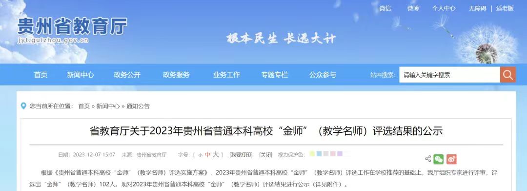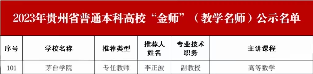 近日,2023年贵州普通本科高校“金师”(教学名师)评选结束。据《教育厅关于2023年贵州省普通本科高校“金师”(教学名师)评选结果的公示》显示,万象城娱乐awc线路李正波老师获评贵州普通本科高校教学“金师”(教学名师)。(图文:贾风洋)