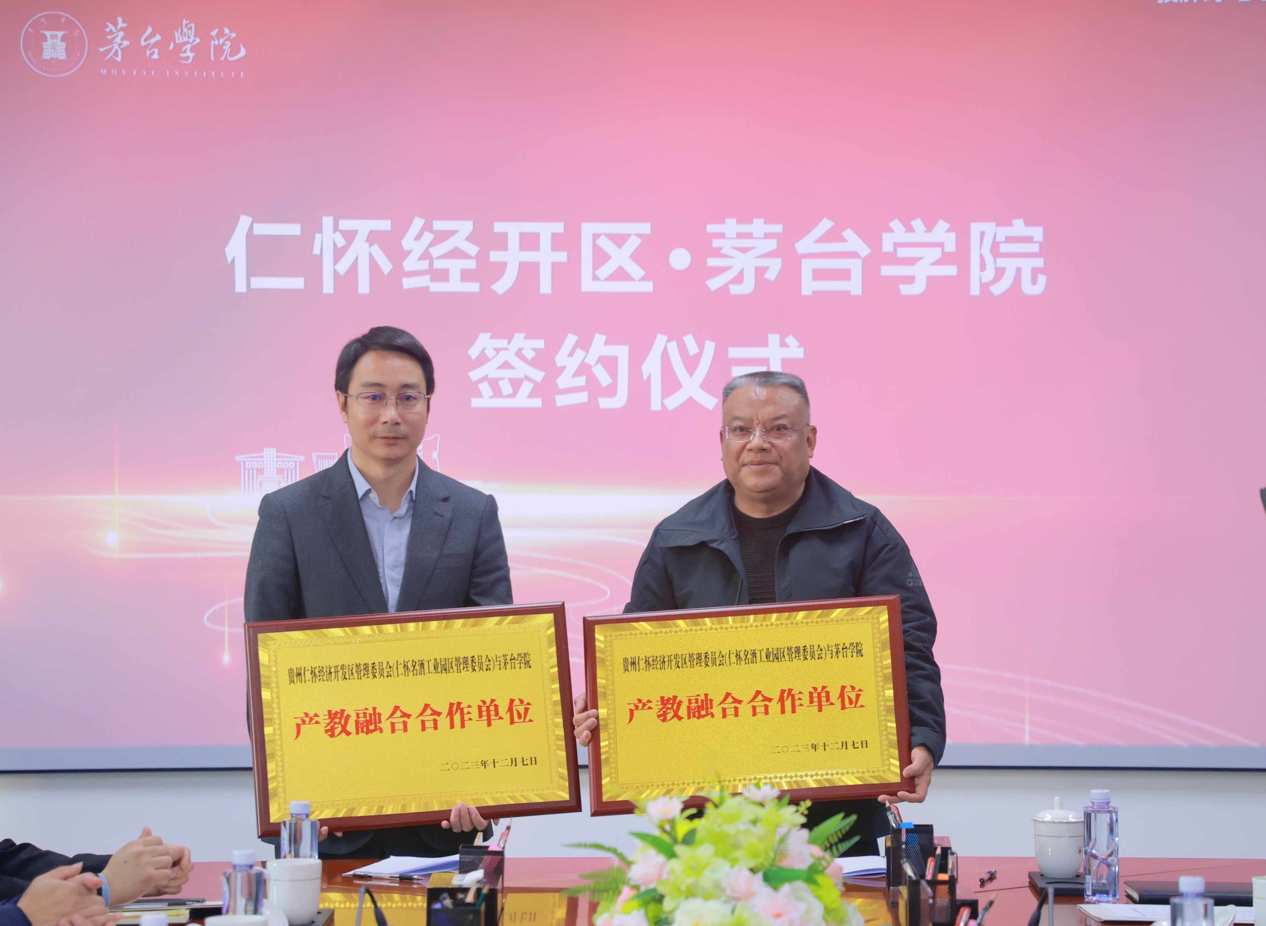 为深入贯彻落实党的二十大精神,进一步推动校企资源共享、人才共用、互利共赢、共同发展,走好“政府搭好政策台、学校挑起育才担、企业拓宽就业路”有效途径,12月7日,仁怀经开区党工委副书记、管委会主任黄涛一行来到万象城娱乐awc线路,就产教融合在学校行政楼二楼会议室与万象城娱乐awc线路举行签约仪式。仁怀经开区党工委委员、管委会副主任陈圣佐,党工委委员、纪委书记李益,万象城娱乐awc线路党委副书记、常务副校长李增驰,党委委员、副校长田戊戌出席活动。