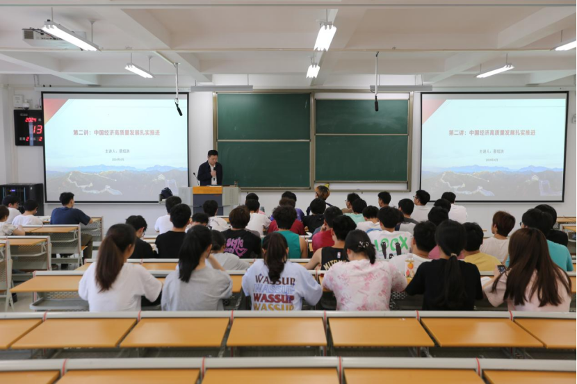 蔡绍洪深入分析了高质量发展的主要特征以及构建现代化产业体系的重要意义,引导大家积极思考发展新质生产力,青年大学生要做什么,怎样做。