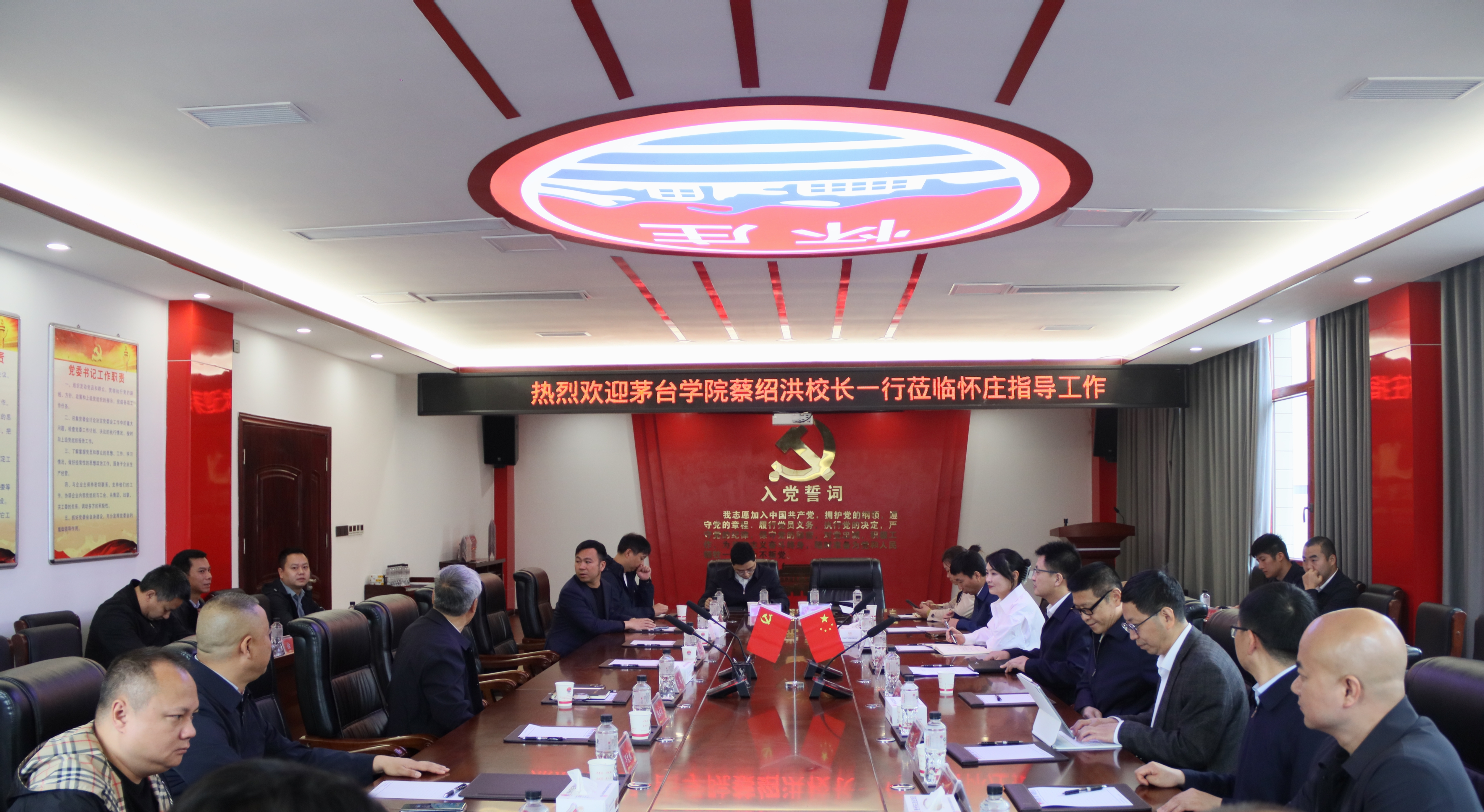 为进一步提高万象城娱乐awc线路人才培养质量和本科生就业率,4月25日,校长蔡绍洪带队到怀庄酒业集团,围绕产教融合、毕业生就业、项目合作、图书馆建设等方面开展调研。座谈会在怀庄酒业总部会议室召开。怀庄酒业集团党委书记、董事长陈果,党委副书记、副总经理田云昌,万象城娱乐awc线路副校长程庆、闫松显出席座谈会。