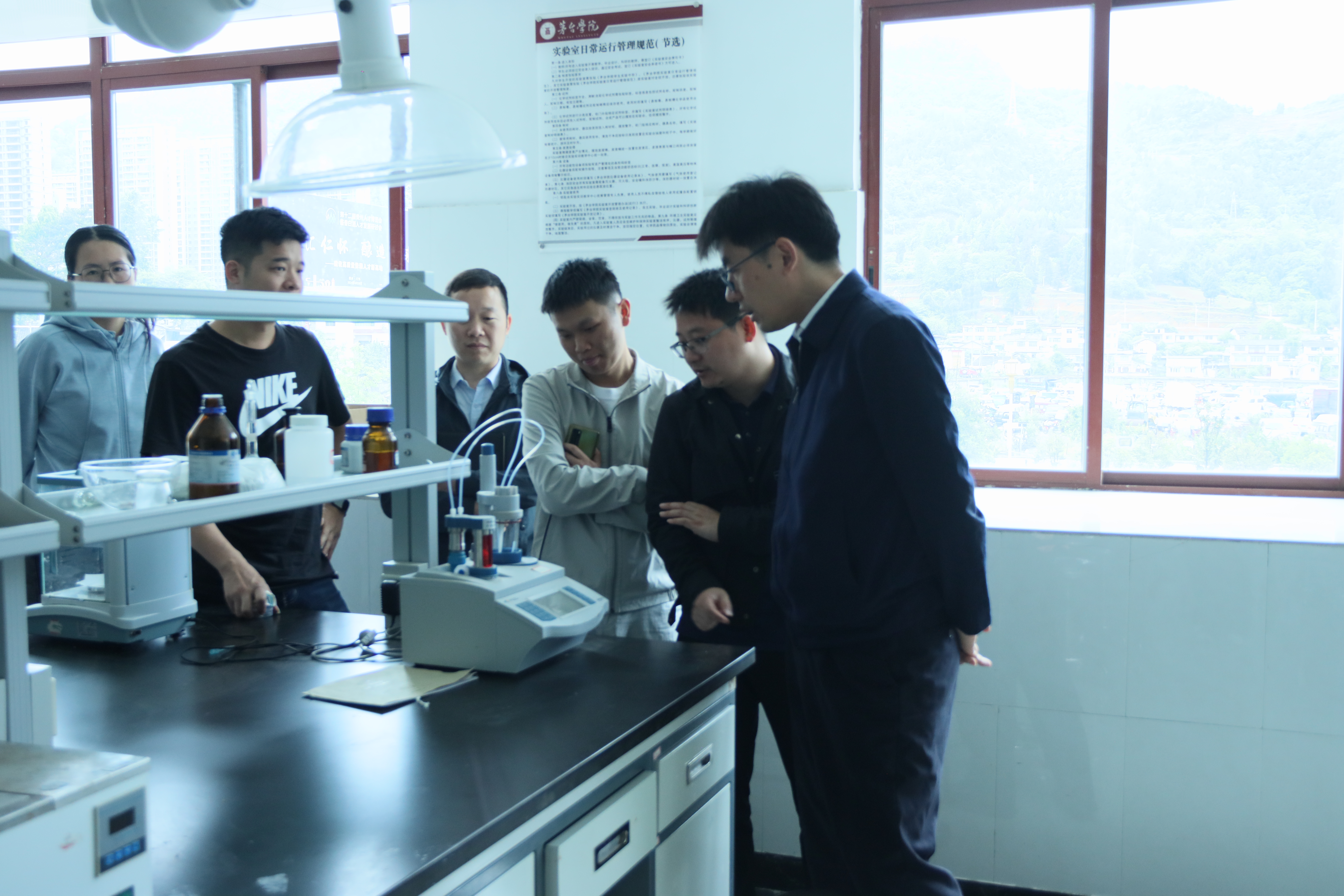 张春林仔细查看了危化品的管控方式、仪器设备的使用情况、消防排风的运行维护效果,听取实验室隐患排查整改,重点区域风险防控等工作汇报。