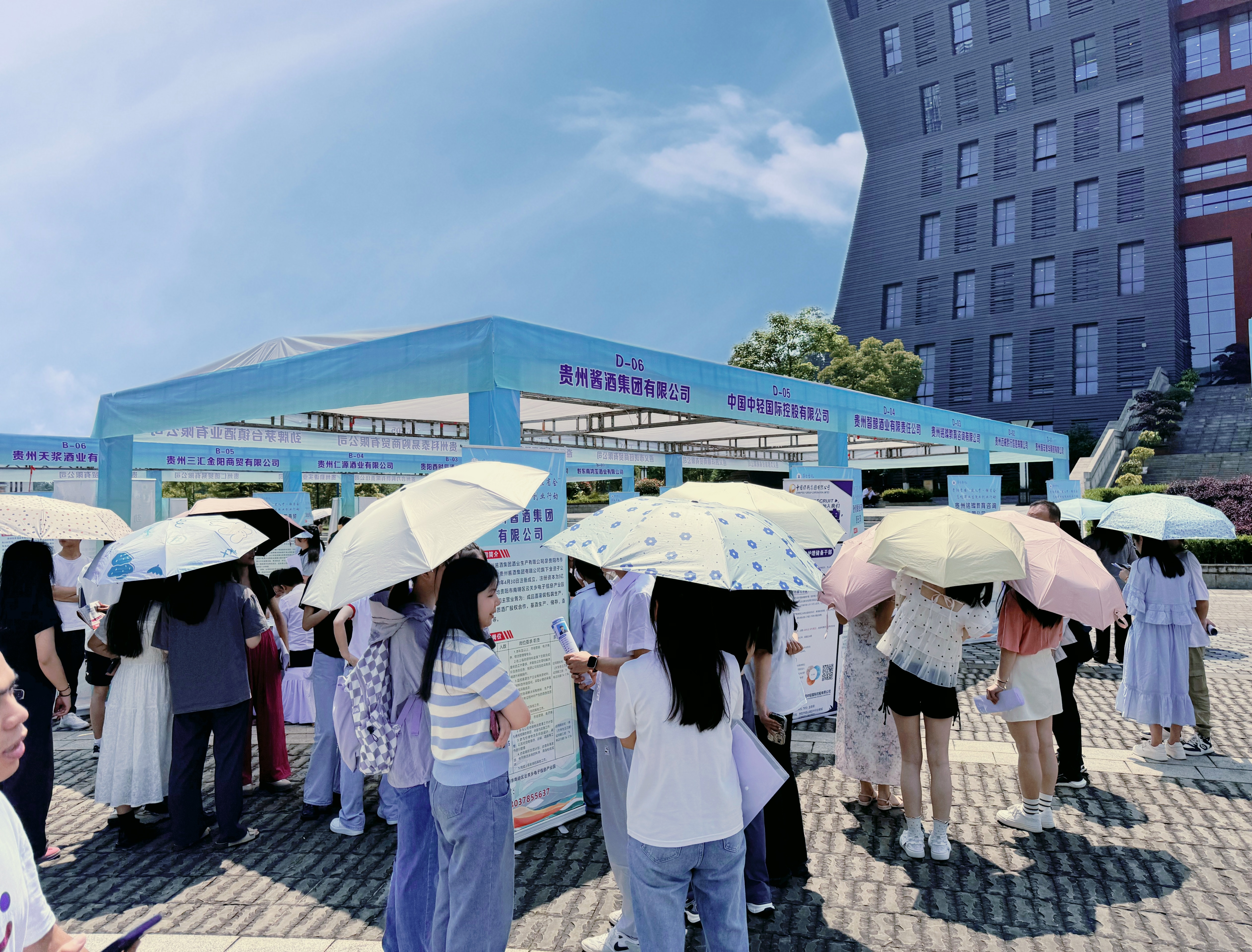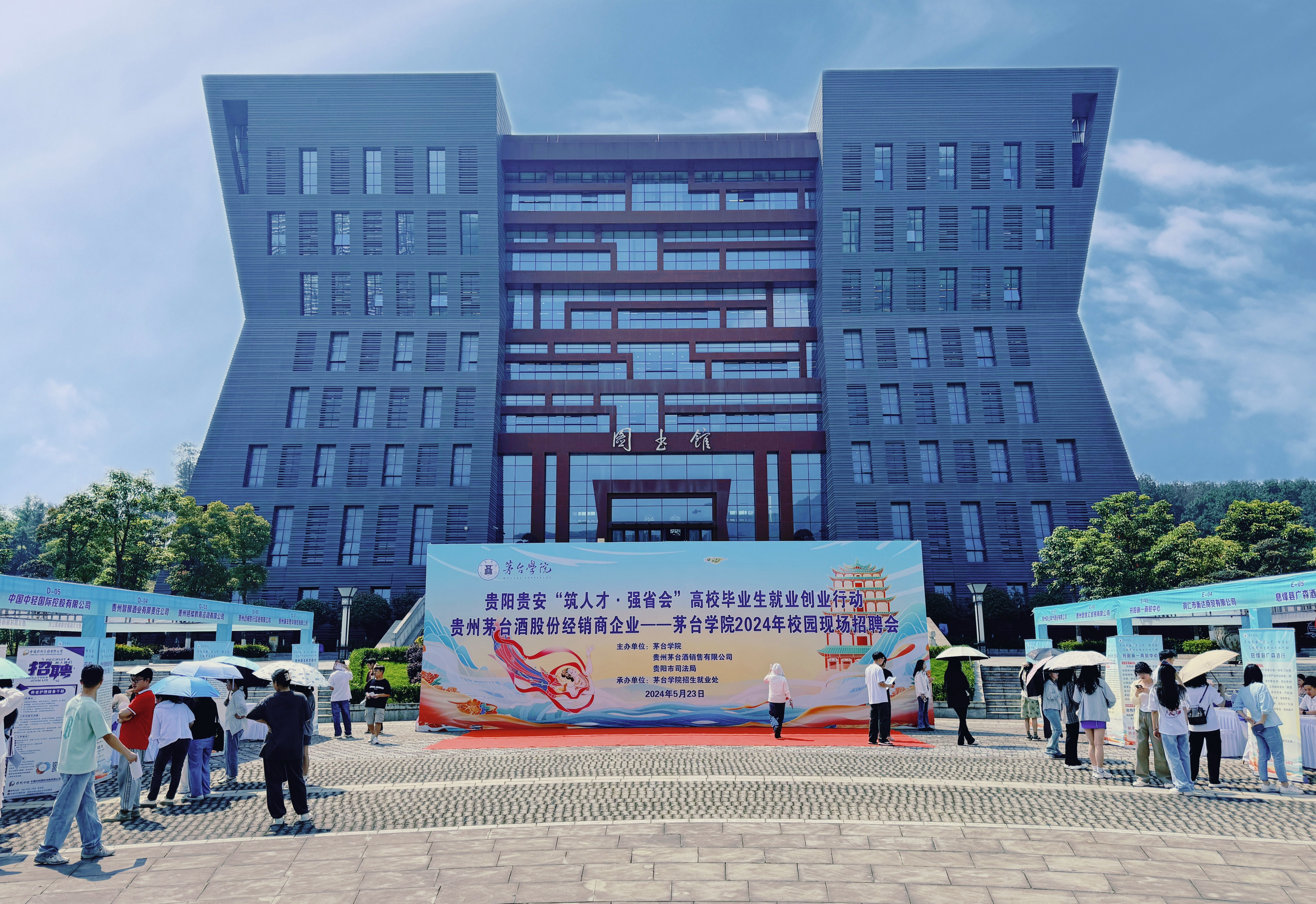 5月23日,贵阳贵安“筑人才·强省会”2024届高校毕业生就业创业行动线下招引活动在万象城娱乐awc线路举行,贵州茅台酒股份经销商企业——万象城娱乐awc线路2024年校园现场招聘会在学校图书馆前场地上拉开帷幕,2024届毕业学子络绎不绝,前往咨询和投递简历。