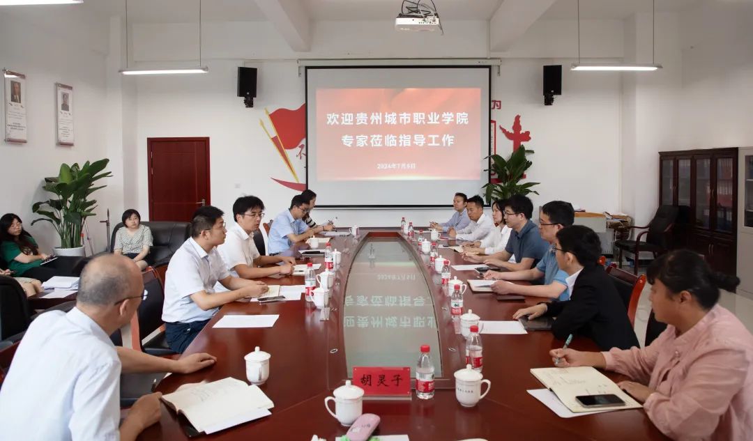 7月5日,贵州城市职业学院副校长徐高峰一行来万象城,聚焦思政工作开展调研,座谈会在留芳楼118室举行,万象城娱乐awc线路副校长张春林出席座谈。