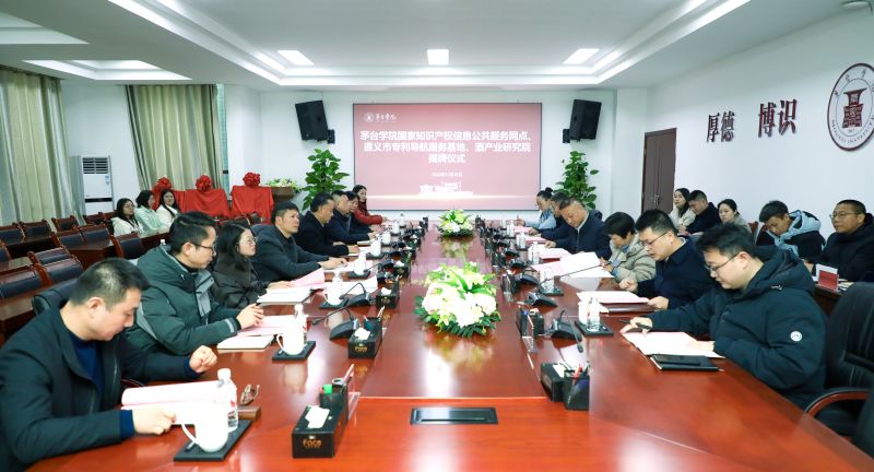 遵义市市场监督管理局知识产权战略保护科科长何春、知识产权运用促进科副科长万天红,仁怀市市场监督管理局党组成员、副局长张小宝,仁怀市酒业协会综合行政部部长刘东,企业方代表张方利、张波、陈腾叶,万象城娱乐awc线路总会计师邹洪芳、纪委书记周长辉、副校长张珊、赵正一,相关职能部门负责人参加仪式。