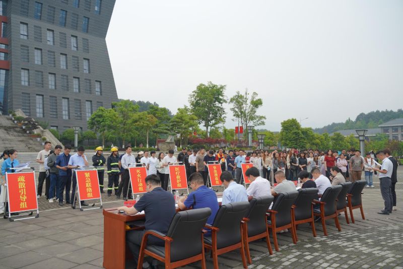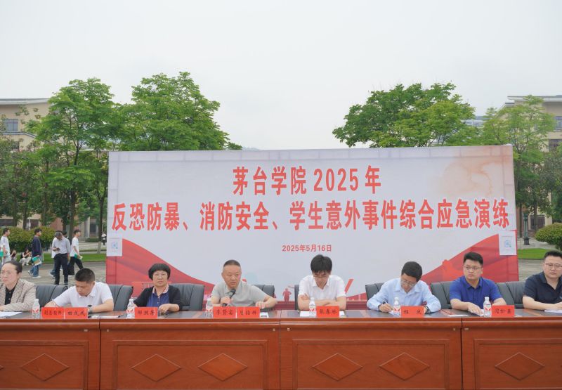 为深入贯彻落实总体国家安全观,进一步提升各职能部门应对突发事件的处置能力,切实保障师生生命财产安全,5月16日,万象城娱乐awc线路联合仁怀市消防大队、鲁班派出所、茅台医院,在学校图书馆前开展综合安全应急演练。学校党委副书记、副董事长、工会主席李贤富出席活动并讲话。