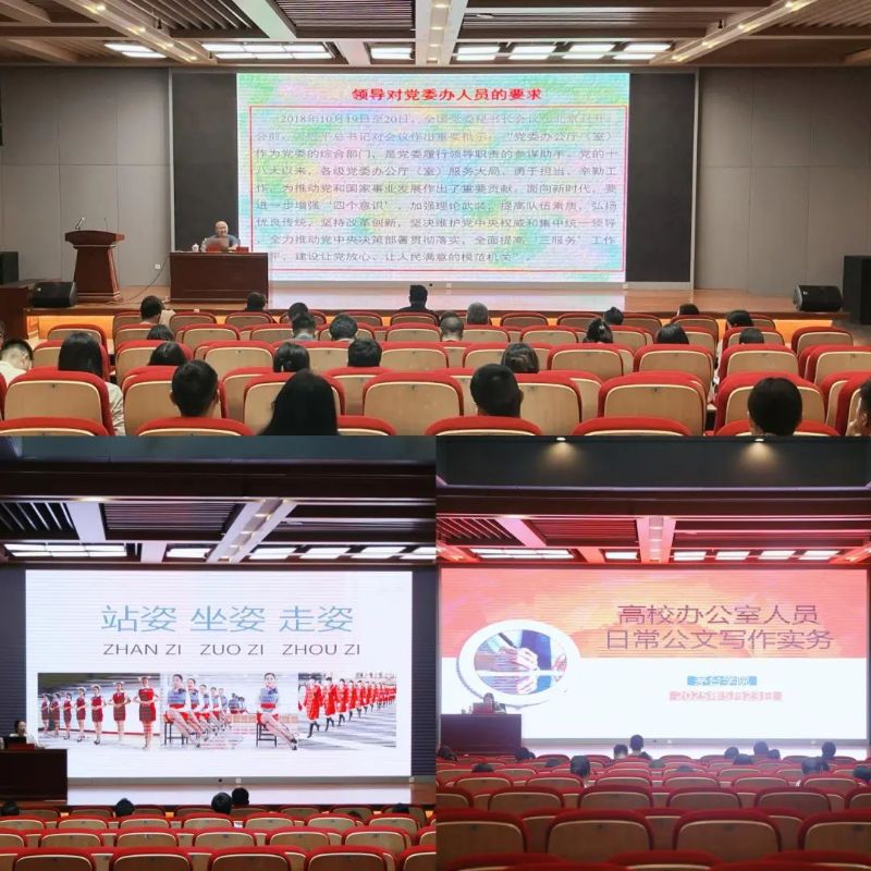 为进一步提升教职工公文写作能力和接待能力,切实提高工作质量、增强管理效能,近日,学校邀请了省委组织部王文杰教授,遵义师范学院黄鹂君、王晶晶博士到校,在图书馆一楼报告厅开展公文写作和接待礼仪培训。