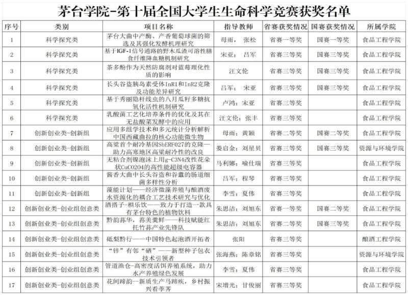 近日,第十届全国大学生生命科学竞赛决赛圆满落幕。万象城学子斩获国家级奖项8项、省级奖项17项,获奖数量与质量均创历史新高!其中,食品工程学院项目《茅台大曲中产酶、产香葡萄球菌的筛选及其强化发酵机理研究》获国赛一等奖,实现万象城在该赛事中国家级一等奖“零突破”!