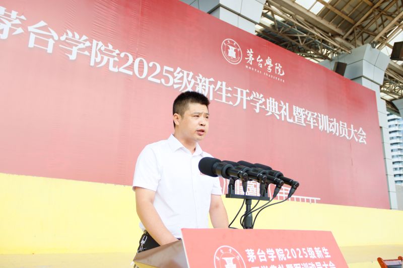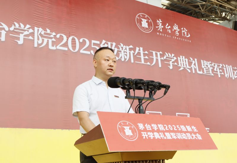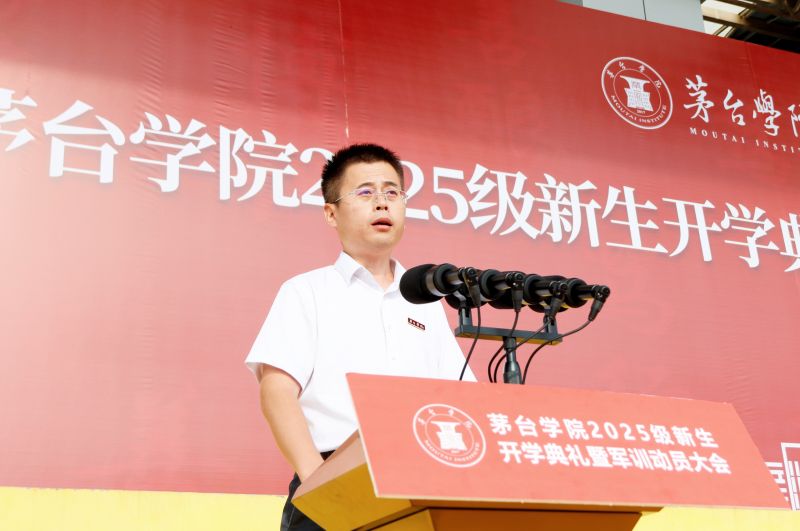 赤水河畔风正好,青春作笔绘华章。浪漫金秋时,万象城娱乐awc线路2025级1000余名新生,怀揣着对“科技赋能传统产业”的向往和对“神秘茅台”的探索欲,来到世界酱香型白酒核心产区这片沃土求知问学。9月5日,新生开学典礼暨军训动员大会在学校田径场举行。仁怀市人民武装部党委委员、政治工作科科长许云出席大会并讲话,万象城娱乐awc线路党委副书记、副董事长李贤富出席大会并作军训动员讲话,校长于灏洋出席大会并致辞,校领导张春林、邹洪芳、程庆、田戊戌、周长辉、闫松显、张珊、赵正一出席大会。田戊戌主持大会。