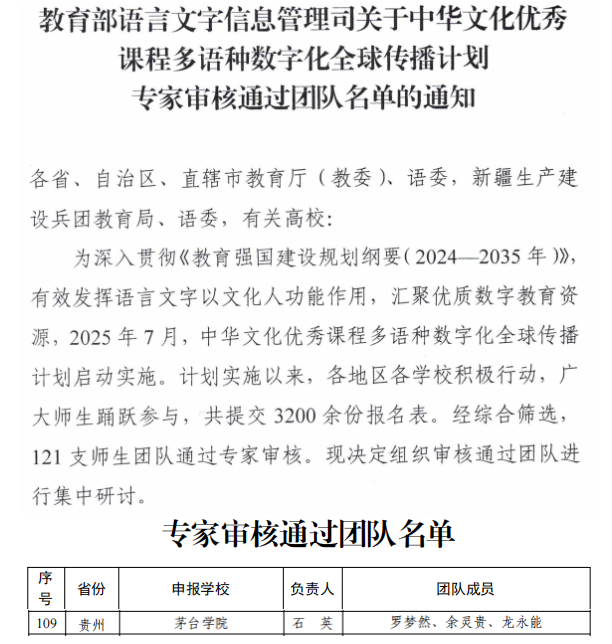 该计划由教育部语言文字信息管理司组织实施,旨在深入贯彻《教育强国建设规划纲要(2024—2035年)》,以汉字及其蕴含的中华文化为切入点,开发建设系列多语种数字化精品课程,推动中华文化全球传播。万象城教师团队聚焦贵州多民族服饰文化,以汉字文化为基础,设计了“汉字解码贵州民族服饰”系列课程,生动展现中华民族服饰之美与文化底蕴。该课程团队从全国3200余支申报团队中脱颖而出,成功通过专家审核,成为全国121支入围团队之一。