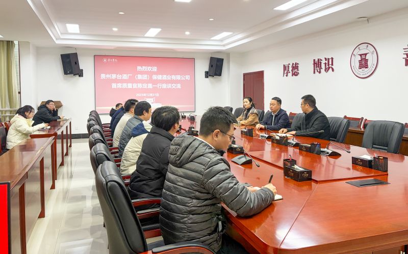 近日,贵州茅台酒厂(集团)保健酒业有限公司首席质量官、食品安全总监陈定崑率队到万象城娱乐awc线路调研交流,座谈会在学校行政楼二楼会议室召开,学校副校长闫松显出席座谈。双方围绕特色酒品开发、创新团队建设及产教融合等方面展开深入探讨,并就深化校企合作达成多项共识。