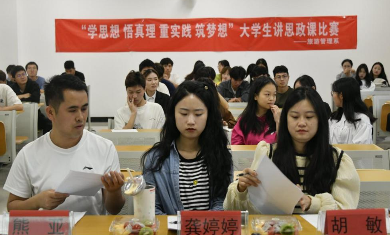 为深入学习宣传贯彻习近平新时代中国特色社会主义思想和习近平总书记关于深化思政课改革创新的重要指示精神,引导学生对思政课教学内容的学习与思考,展现新时代大学生的马克思主义理论素养和精神风貌。6月12日,旅游管理系在A1-304组织开展了第三届“大学生讲思政课风采大赛”活动。比赛评委由辅导员龚婷婷、胡敏、熊亚老师担任。
