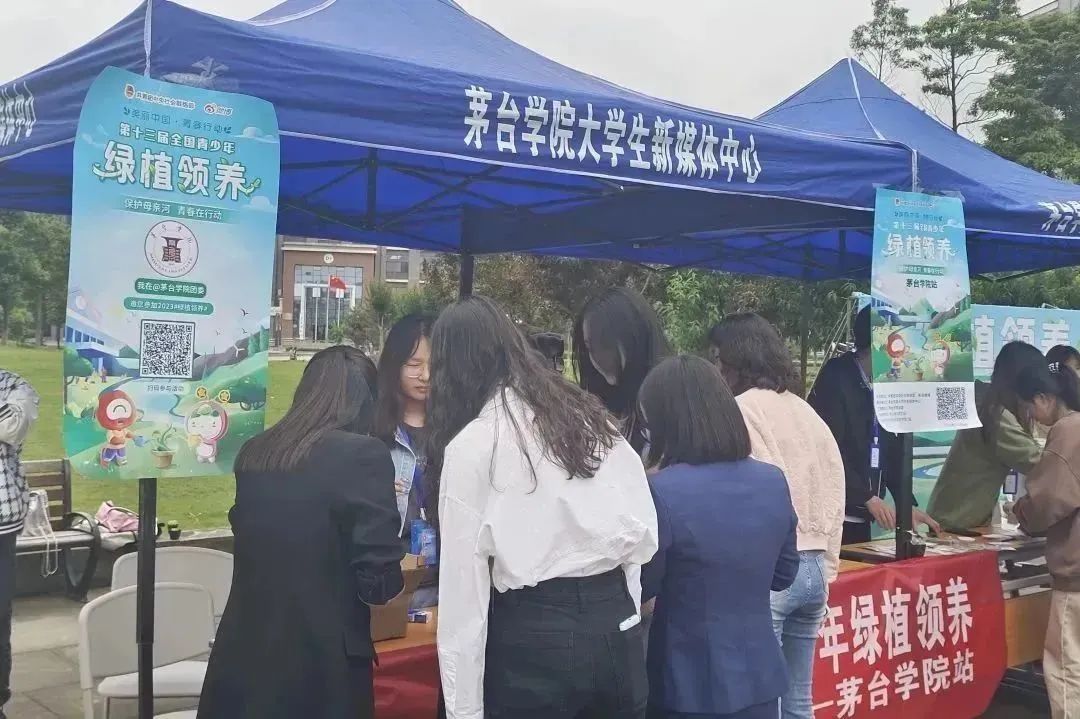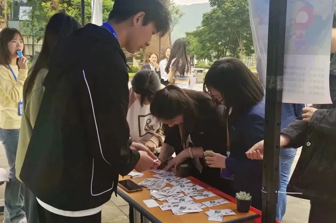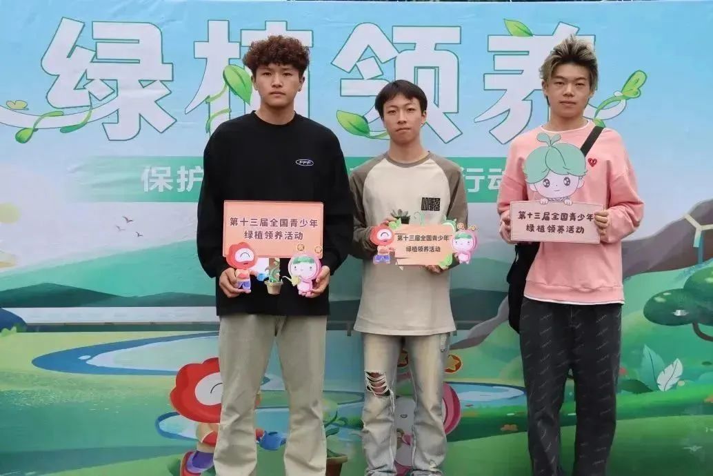 获得奖品后,同学们在卡片上留下属于自己的绿色宣言,与活动展板合影留念,活动现场充满欢声笑。