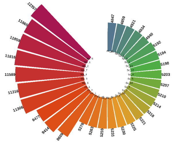 针对产醇、产酯及产其他风味物质能力较强的6种酵母菌共计30株为供试菌株,通过Illumina HiSeq 4000测序平台进行全基因组测序,并进行基因功能预测,不同种类酵母菌全基因组中能够预测到的基因数存在较大的差异,例如,异常威克汉姆酵母预测基因数均超过11000个,拜耳接合酵母预测基因数为9400个左右,盔形毕赤酵母预测基因数为8600个左右,表明不同种类的酵母菌在功能基因数量上存在较为明显的差异,且同种酵母菌不同菌株之间也存在一定的差异,说明了茅台酒酿造过程中酵母菌具有丰富的基因多样性。(图1)