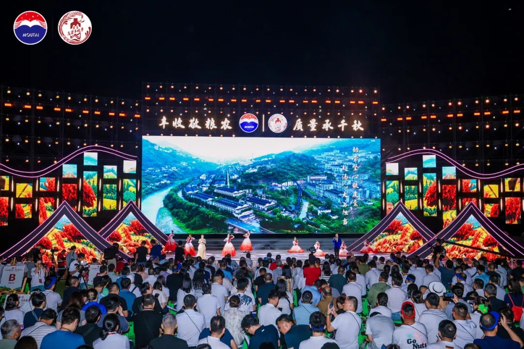 晚会现场,民族舞蹈《红缨子》道出粮农们坚忍不拔的精神品格,传递着茅台一粒好种育好粱,一穗好粱酿美酒的千年坚守;舞蹈《茅台予梦,丰收敬农》展现了红缨子高粱作为茅台酒的根基,不仅承载着酿酒的精湛工艺,更承载着对粮农的深情厚谊和对农业的无限关怀;歌舞《紧跟你的脚步》,寓意着茅台与种植农户齐心协力,跟随党的指引,健步向前,共同迎接灿烂的明天……每一个节目都表达了对自然的感恩和对粮农的感激,每一幕也都承载着对过往的致敬与未来的期许。随着节目的深入,精彩的无人机表演压轴登场,丰收的喜悦如同潮水般涌来,在大家的共同见证和分享下,茅台红缨子高粱丰收季活动也圆满落幕。