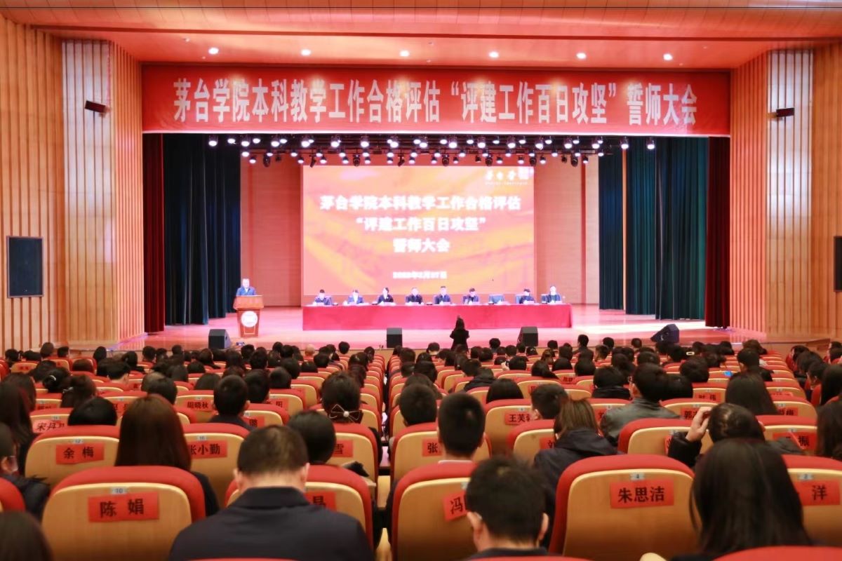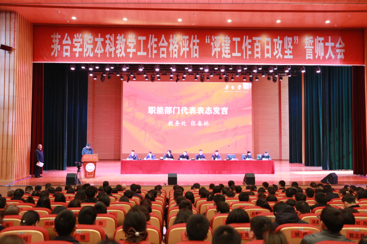 为进一步增强师生信心,统一思想,凝聚力量,明确任务,压实责任,鼓足干劲,奋勇拼搏,以临战的状态、必胜的决心,夺取合格评估的胜利,2月27日,万象城娱乐awc线路在大礼堂召开本科教学工作合格评估“评建工作百日攻坚”誓师大会。茅台集团党委副书记、万象城娱乐awc线路党委书记卓玛才让出席并讲话,万象城娱乐awc线路校长蔡绍洪出席并作工作部署,党委副书记、常务副校长李增驰主持大会,党委副书记、纪委书记王维欣,总会计师邹洪芳,副校长余莉、程庆、田戊戌出席大会。