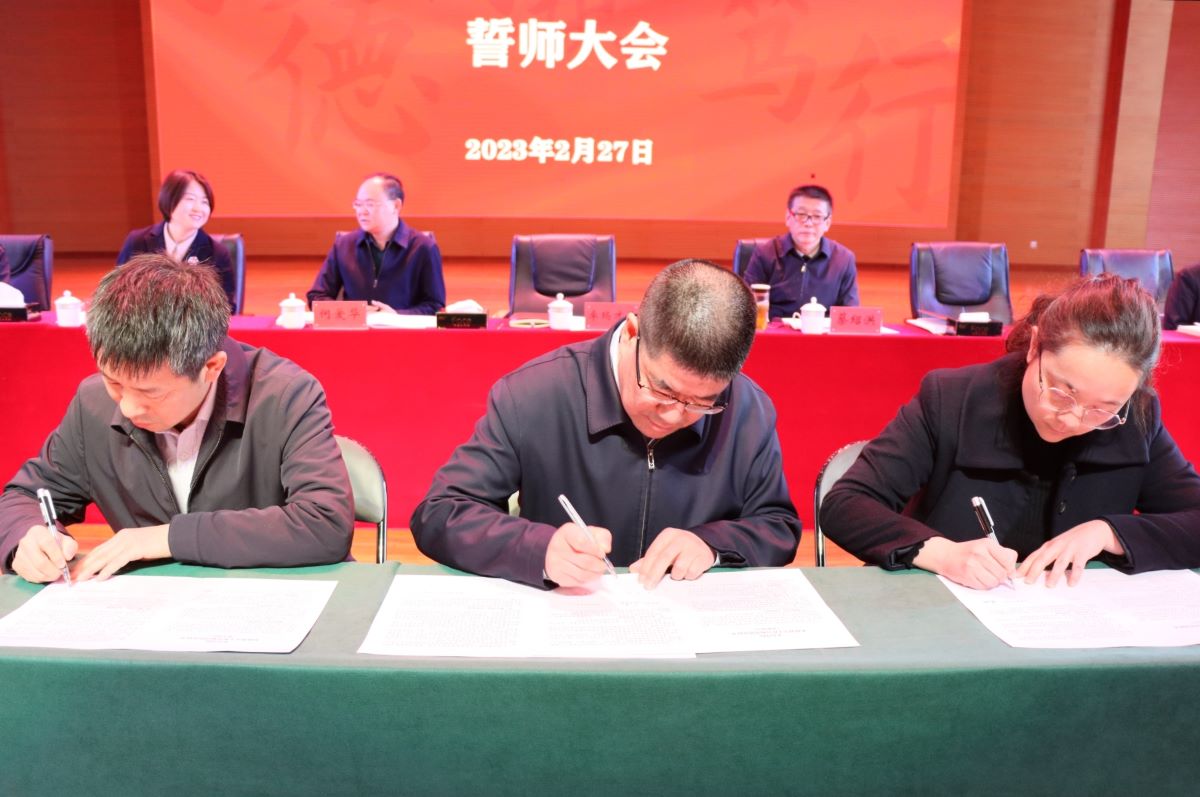 会上,全体教职员工进行宣誓,表达了完成合格评估工作的坚定信心与必胜决心。