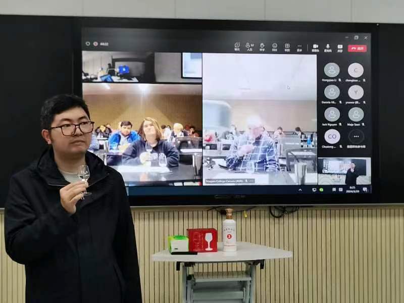 3月28日,学校与加拿大尼亚加拉学院举行学术交流活动,酿酒工程系李喆老师以“茅台酒的历史文化与白酒品评”为题,为尼亚加拉学院师生开展了线上讲座。