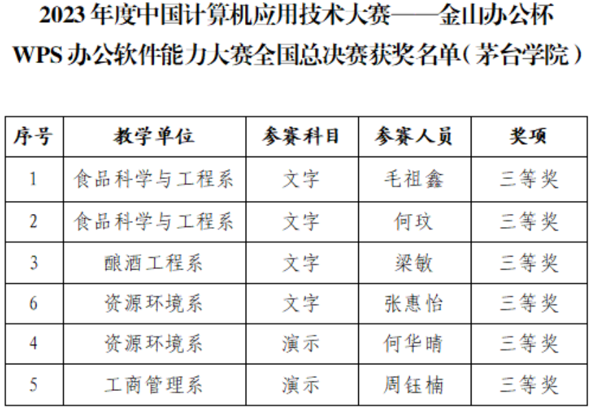 万象城娱乐awc线路在2023年度中国计算机应用技术大赛——金山办公杯 WPS办公软件能力大赛全国总决赛中喜获佳绩