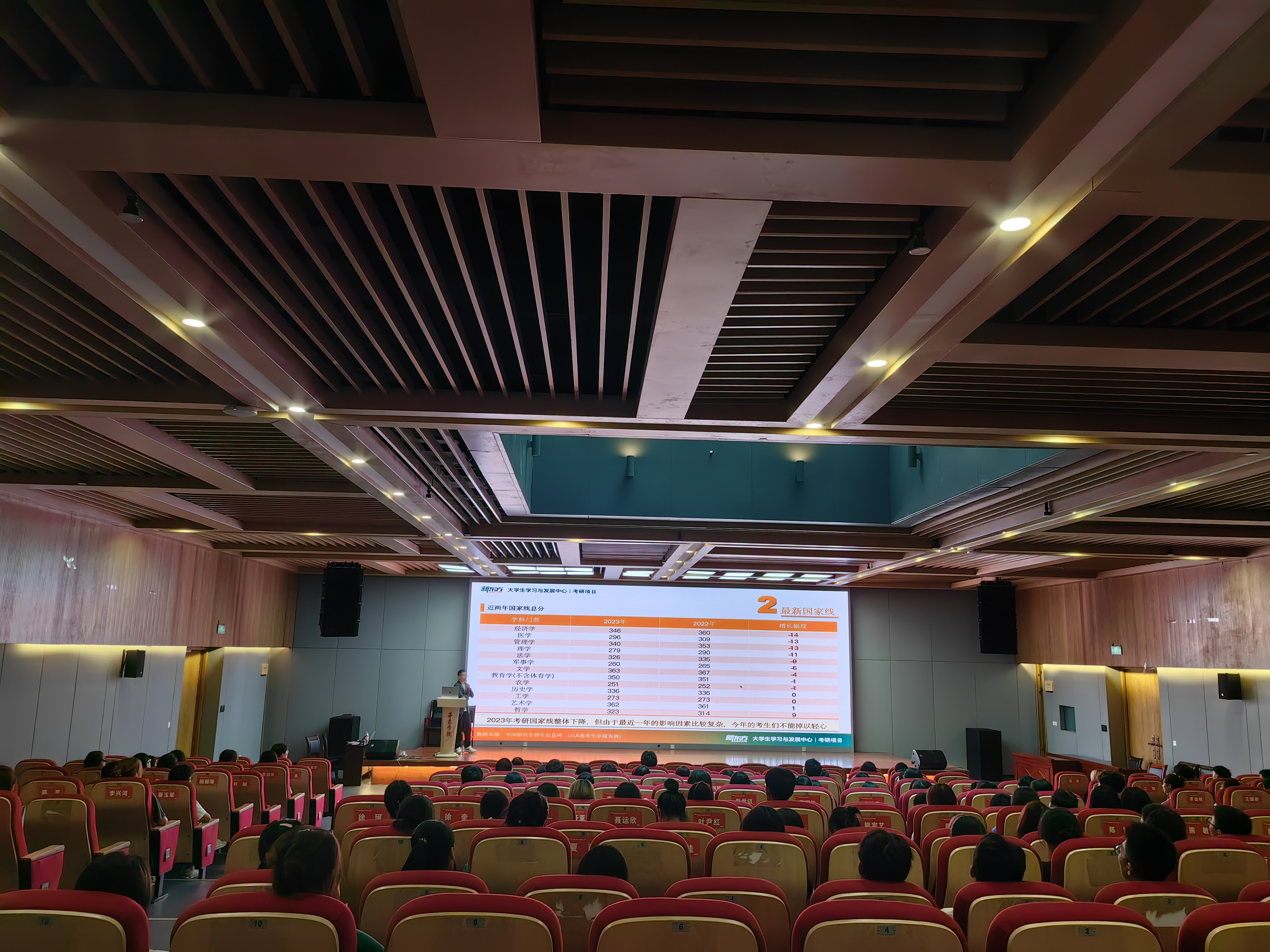 2023年9月15日下午14:00,万象城娱乐awc线路教务处在图书馆报告厅举办了2024届考研百日动员和2025届考研规划沙龙系列考研讲座。本次讲座邀请了贵阳新东方政治教研室主任和考研学业规划师主管进行了宣讲,旨在帮助同学们积极投入冲击阶段考研复习,帮助有考研意愿的学生做好长线考研学习规划,院系和专业选择规划。