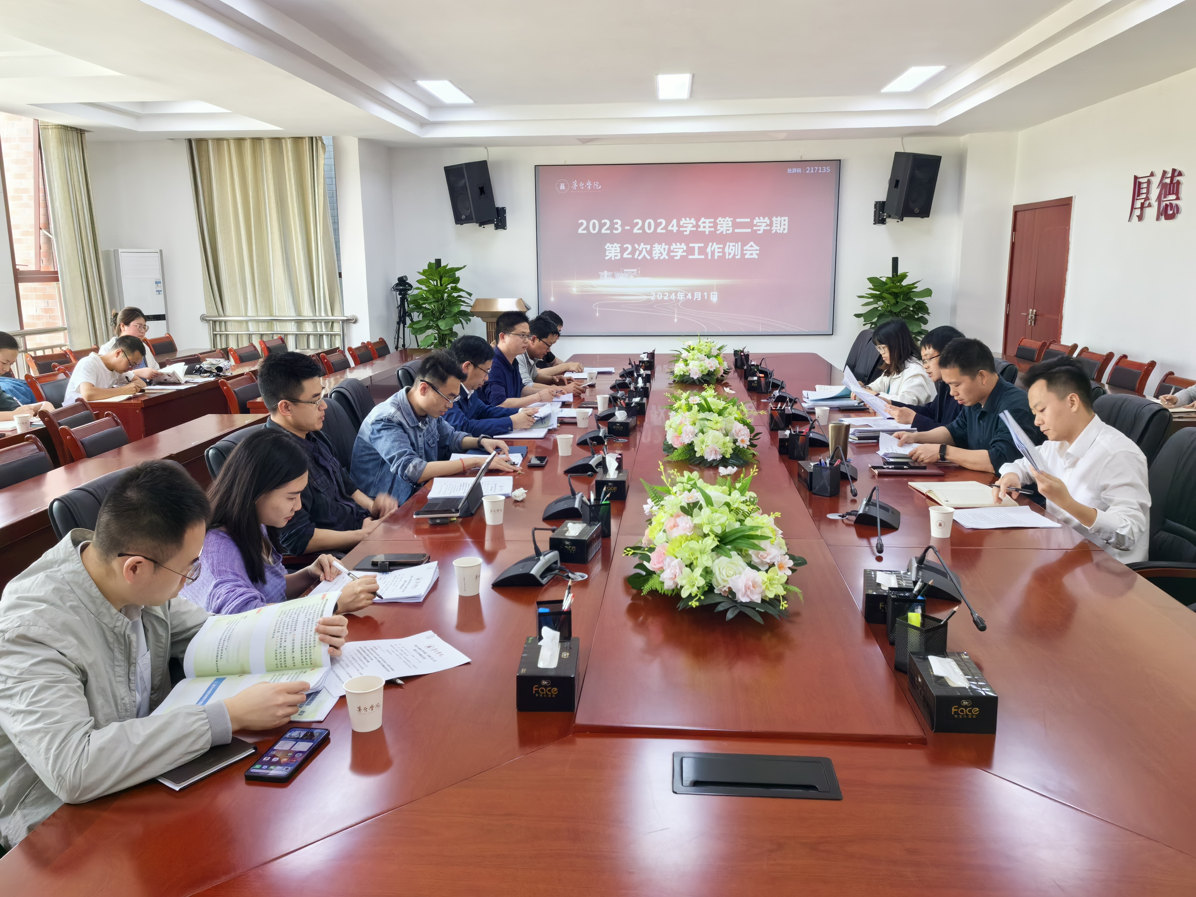 2024年4月1日,2023-2024学年第二学期第2次教学工作例会在行政楼二楼会议室召开,教务处处长张丰主持会议,各教学单位分管教学副主任、实验实训教学中心负责人,各教学单位教学秘书及教务处相关人员参加了会议。