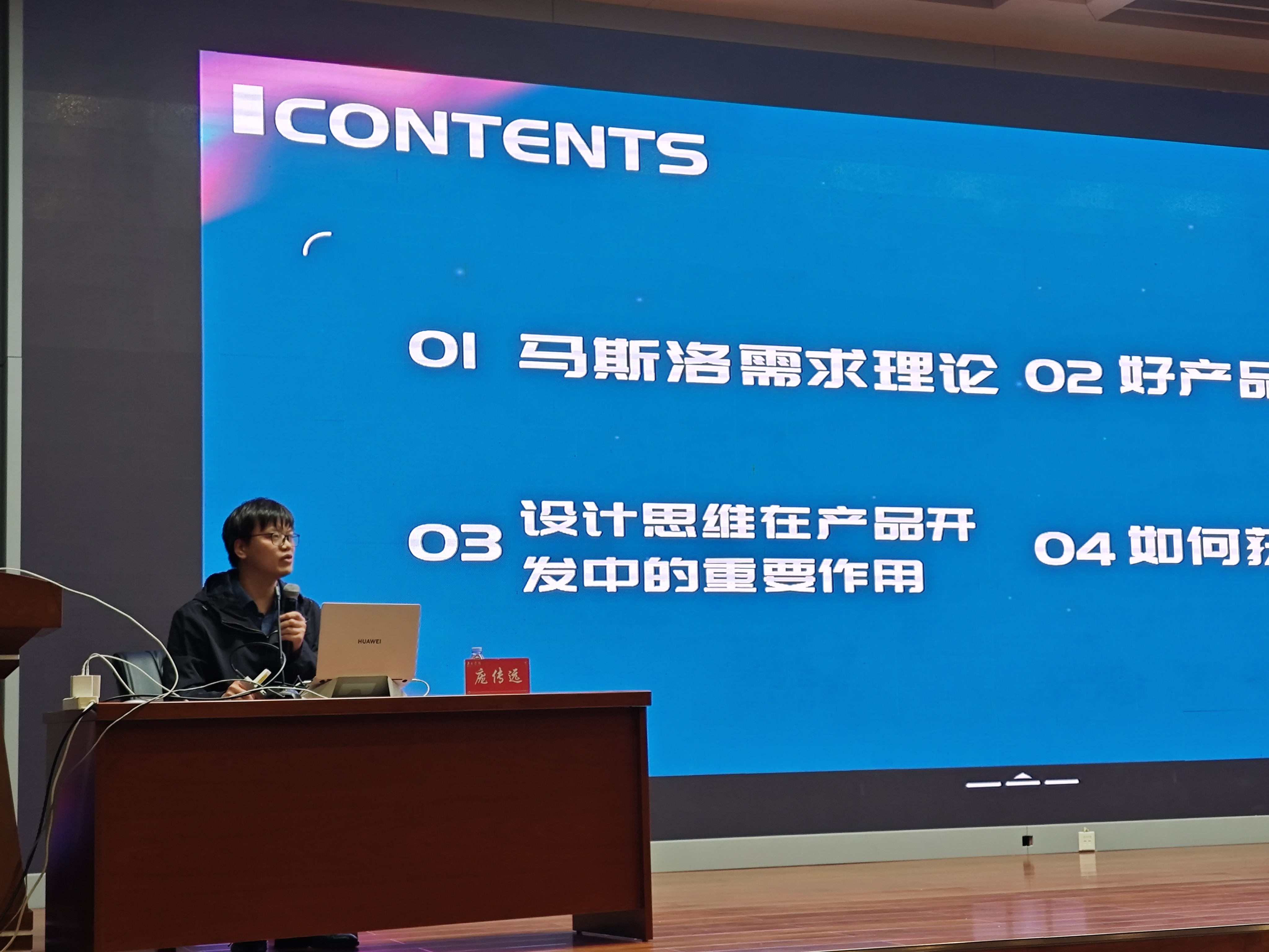 庞传远老师从马斯洛需求理论、好产品的标准、设计思维在产品开发中的重要作用、如何在比赛中获得更好成绩等方面做了系统讲授,深入浅出地剖析了需求、创新、设计和比赛四者之间的逻辑关系,即需求推动创新、创新驱动设计、设计赋能比赛。鼓励同学们培养创新意识和设计思维,围绕国家、社会及个人需求层面的热点、痛点问题,结合专业特色开展项目研究,实现科研转化服务社会发展的关键目标。
