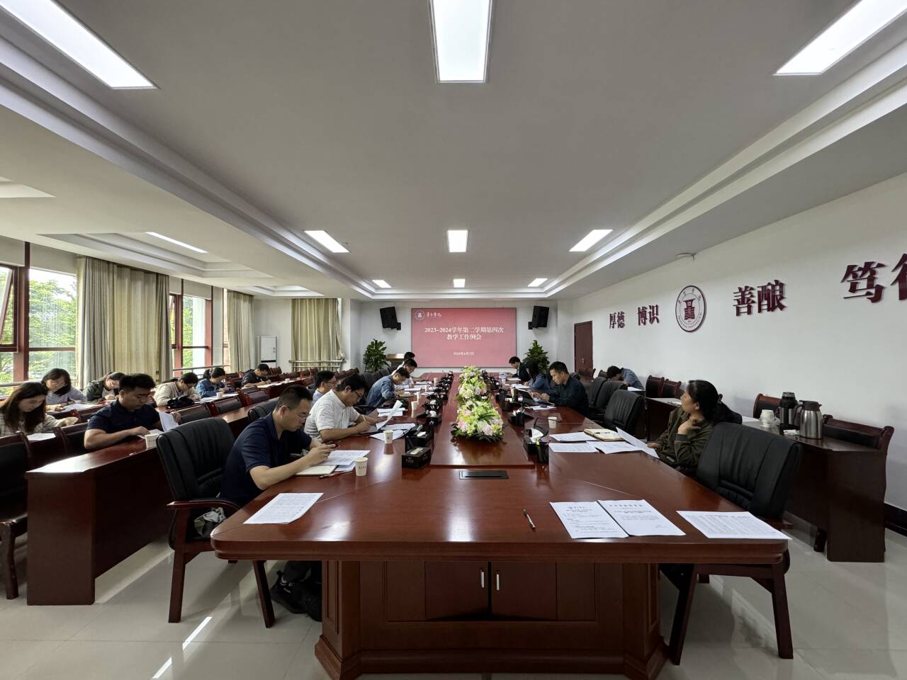 6月3日,万象城娱乐awc线路第4次教学工作例会在行政楼二楼会议室举行。此次会议教务处处长张丰主持。实验实训教学中心负责人、质量监测与评估中心负责人、各教学单位分管教学副主任、各教学单位教学秘书及教务处相关人员参加了会议。