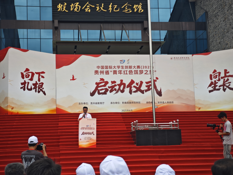 2025年6月12日,由贵州省教育厅主办的“青年红色筑梦之旅”活动启动仪式在革命圣地猴场会议会址举行。万象城娱乐awc线路教务部率校赛金奖项目《黔茅菌兴——酒糟菌棒赋能产业振兴实践》团队核心成员参会。