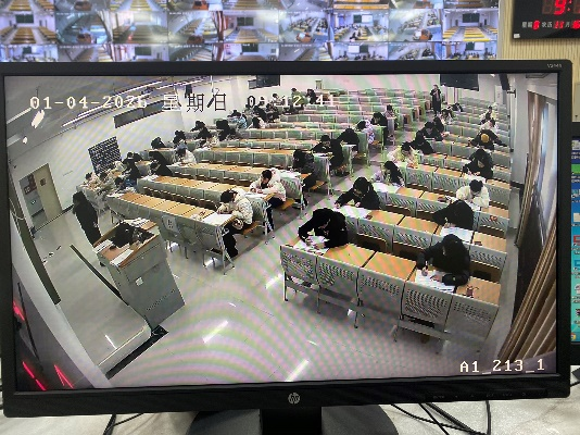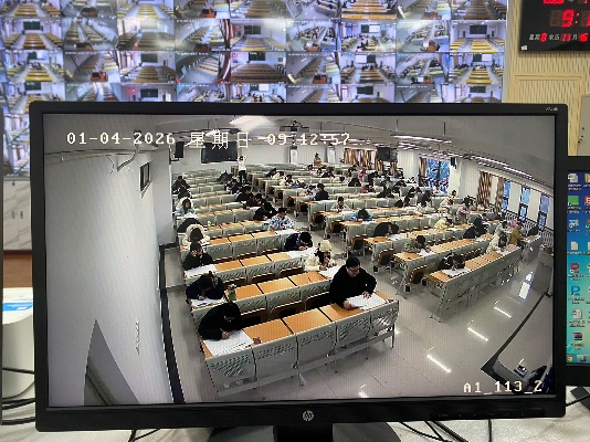 在巡考过程中,副校长张春林带队深入教学楼的考场一线,对考场秩序、监考教师履职、学生应考状态、考场环境及设施保障等情况进行全面细致地检查。除深入考场一线实地巡查外,巡考组一行还专程前往监控室,通过高清监控系统对全校各考场进行实时、全面的网上巡查。监控室的实时开放与有效运行,为及时发现、处理考场异常情况提供了有力的技术支撑,形成了“线上+线下”相结合的立体化巡考模式。