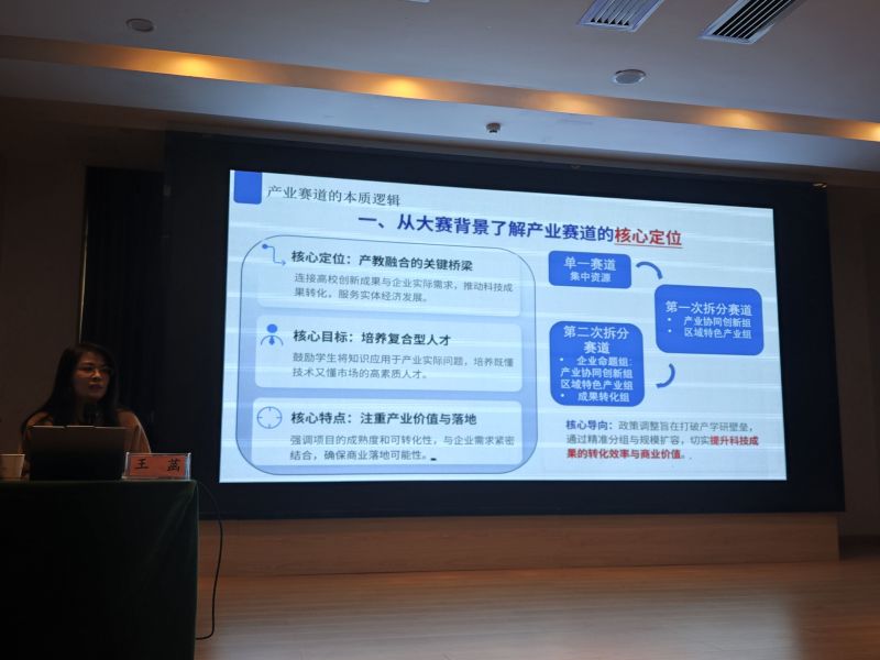 在产业赛道模块,北京邮电大学王菡副教授围绕“产业赛道评审解析与PPT设计要点”展开分享,系统梳理了产业赛道的本质逻辑、评分规则变革及PPT可视化表达技巧,为万象城师生在企业命题组与成果转化组的项目材料准备提供了精准指导。